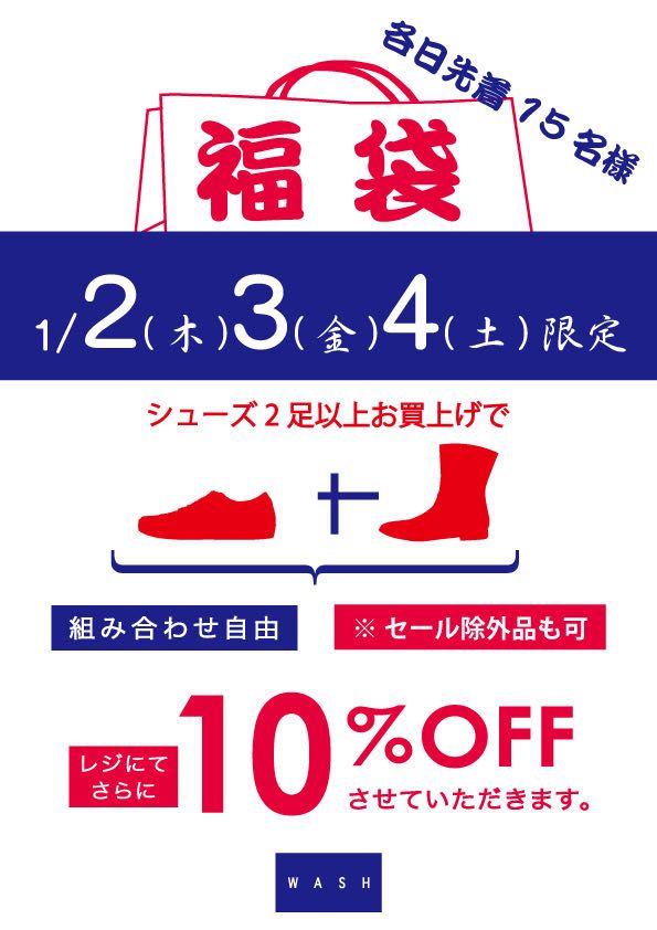 WASHの福袋はお客様が欲しいと思う靴を2点選ぶのみ!!