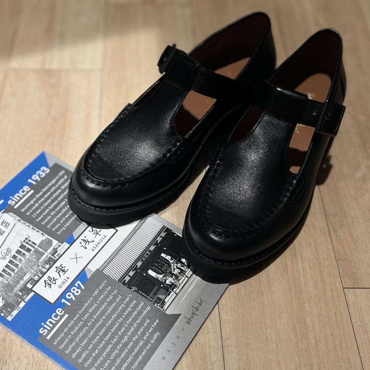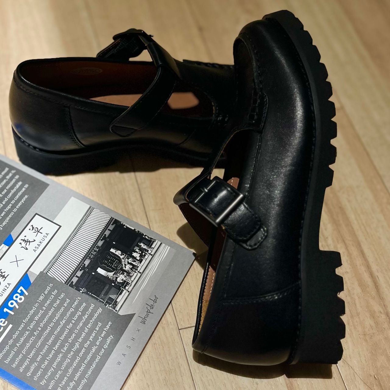日本人デザイナーによる職人技のこだわりがつまったブランド「whoop'-de-doo'」とWASHとのコラボシリーズから、厚底Tストラップローファーが新登場しております。