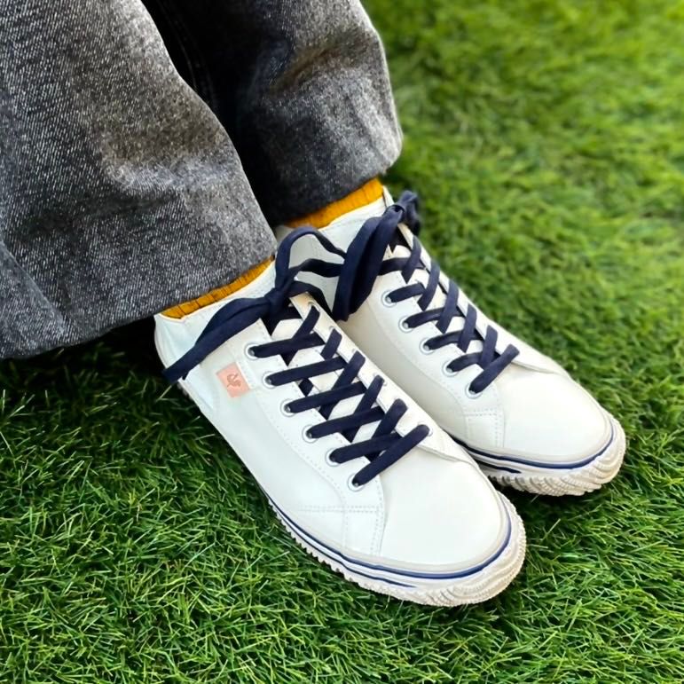 ベースがアイボリーカラーで、サイドのフォクシングテープとシューレースにネイビーでコントラストを効かせた限定カラー✳︎