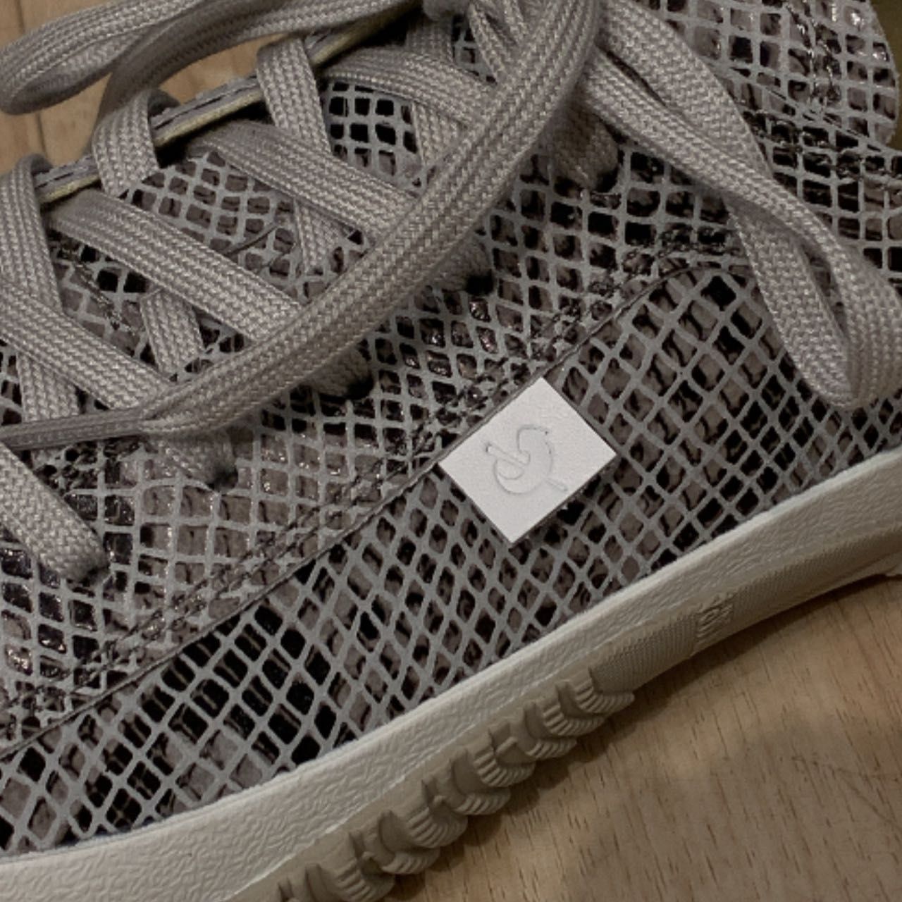 このグレーベースのスエードにプリントされた、