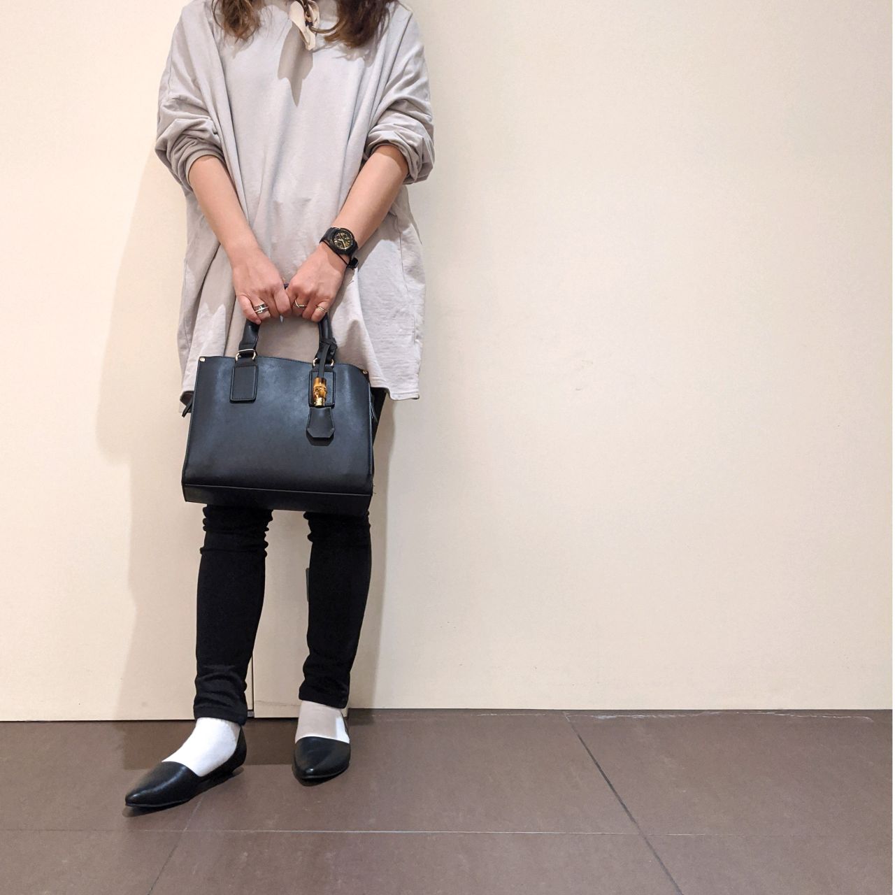 パンプスのすっきりとしたシルエットを最大限に活かして、脚を1cmでも長く…!と、今回は細みのパンツで合わせてみましたが、スカートやボリューム感のあるパンツとも相性◎です!