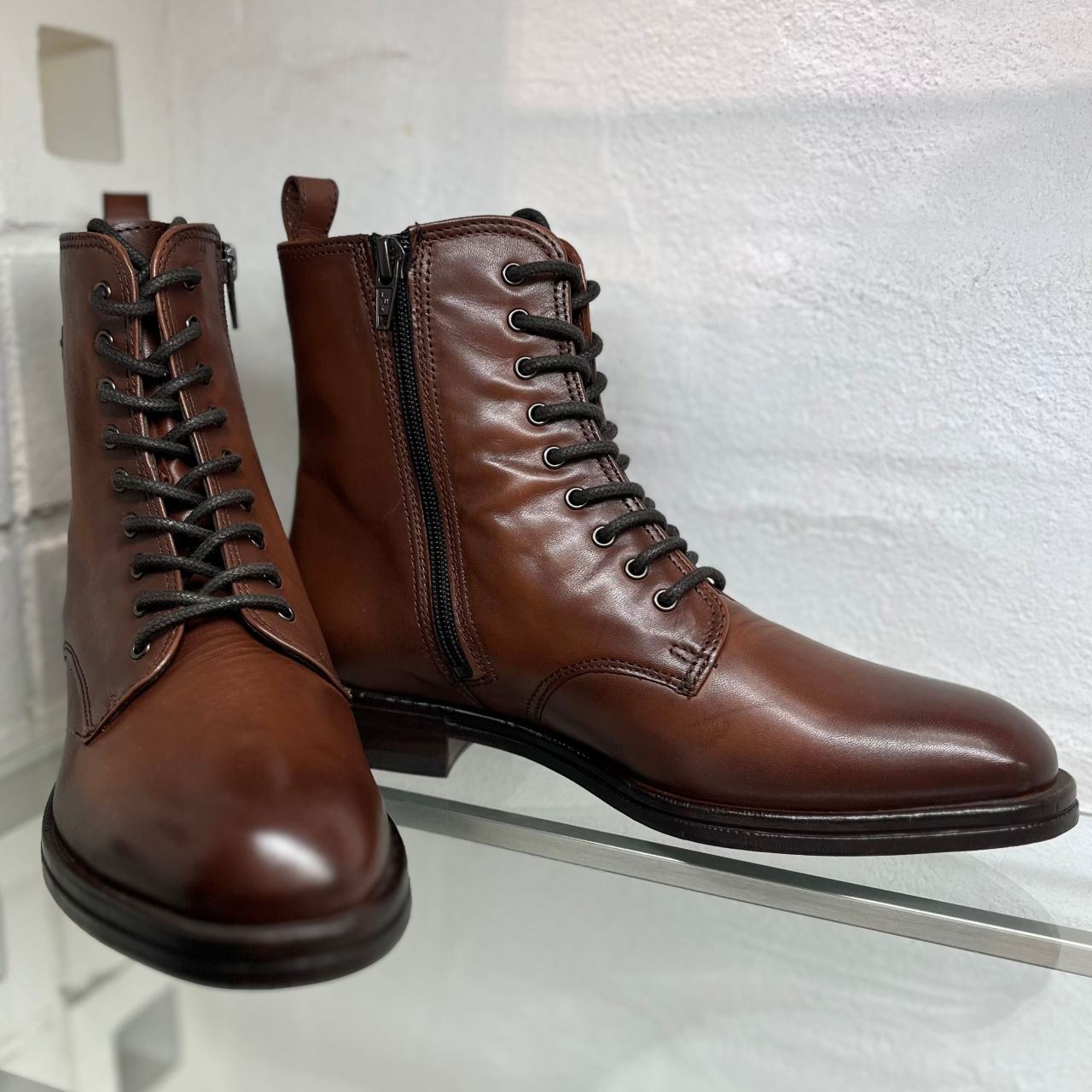 レースアップブーツですが、内側にジップがあるため脱ぎ履きも◎