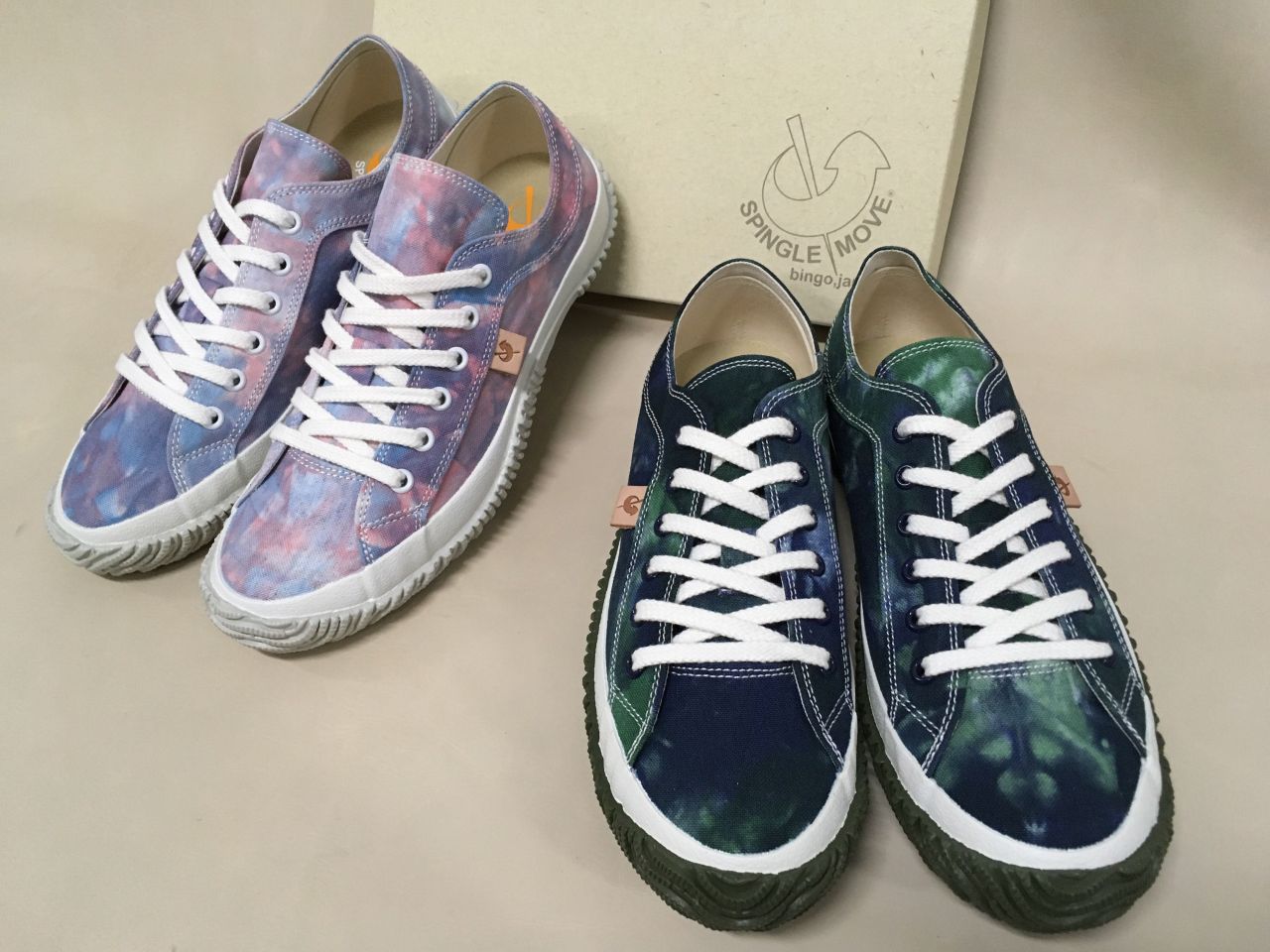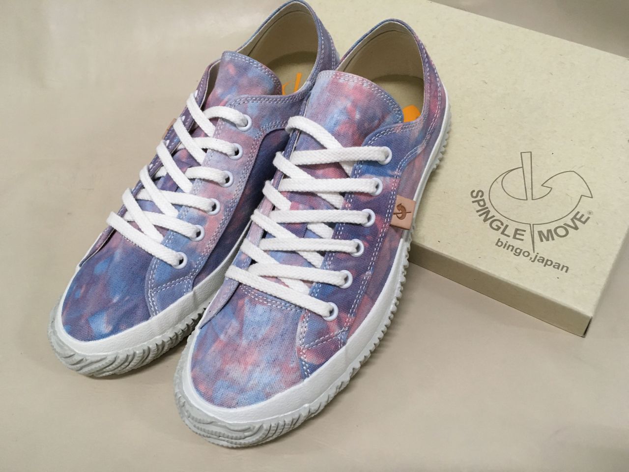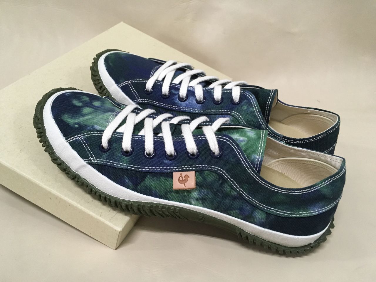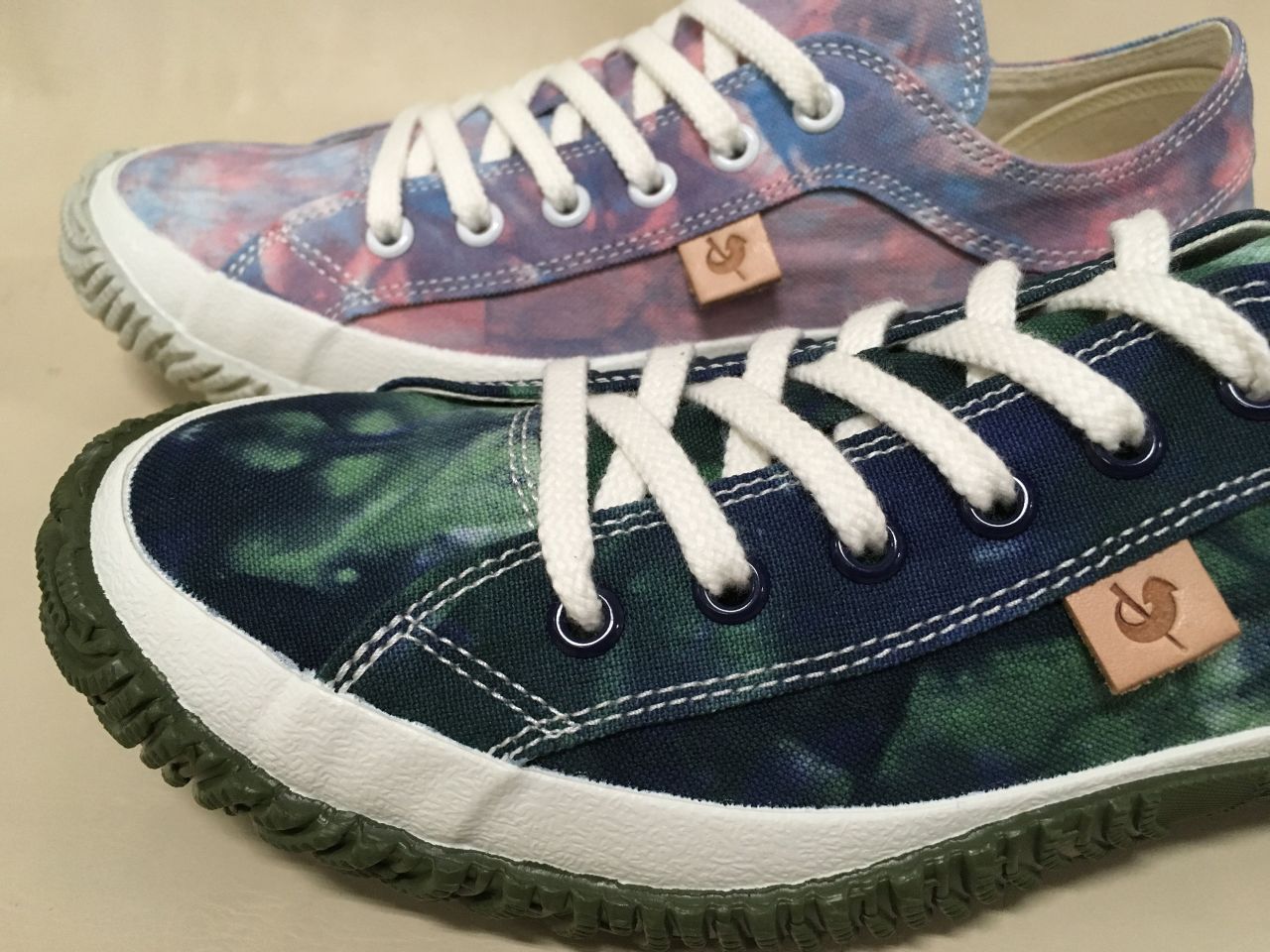 キャンバス生地をくしゃくしゃに丸めて染め上げているので、1足ごとに仕上がりが違いますよー٩( 'ω' )و