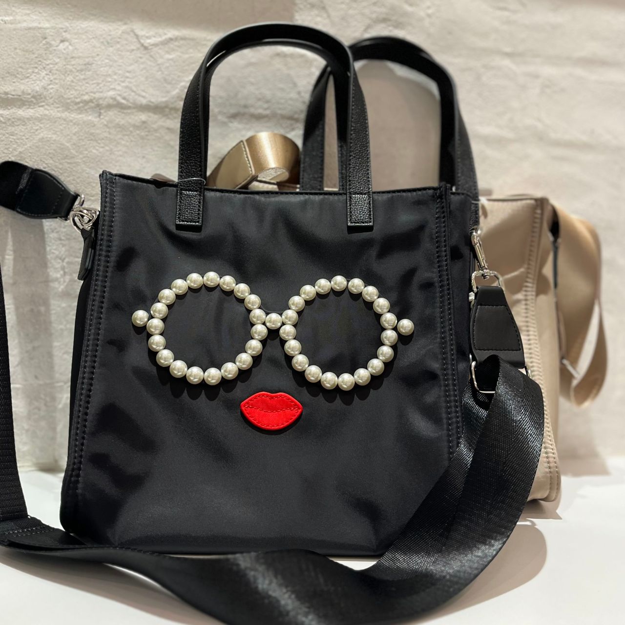 サングラスやスマイルをモチーフとしたバッグや小物で大人気のアジョリーから、パールで縁取られたサングラスが特徴的なファーバッグが入荷しております。