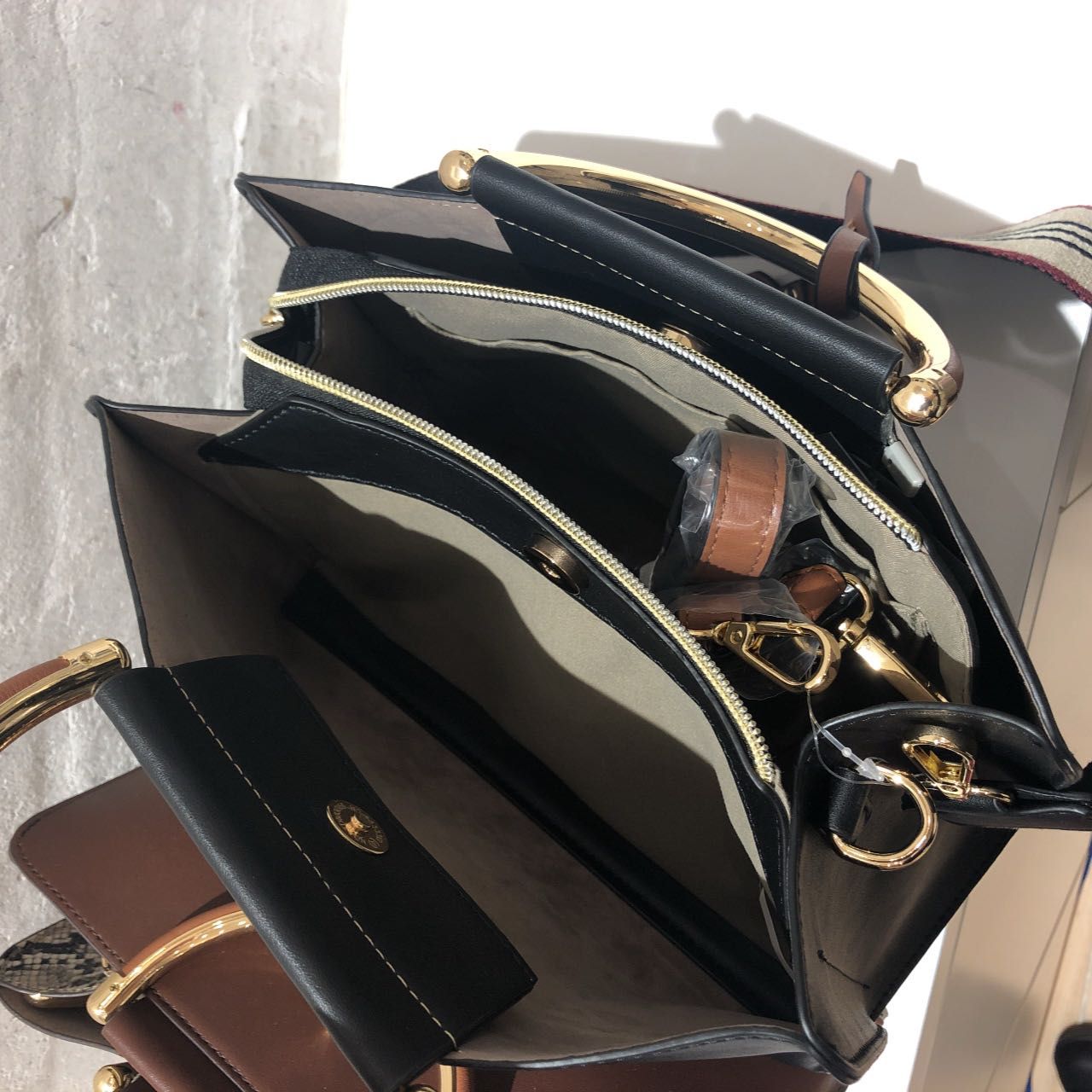 また、金手部分やショルダーストラップにキャメルカラーがさりげなく入っております。