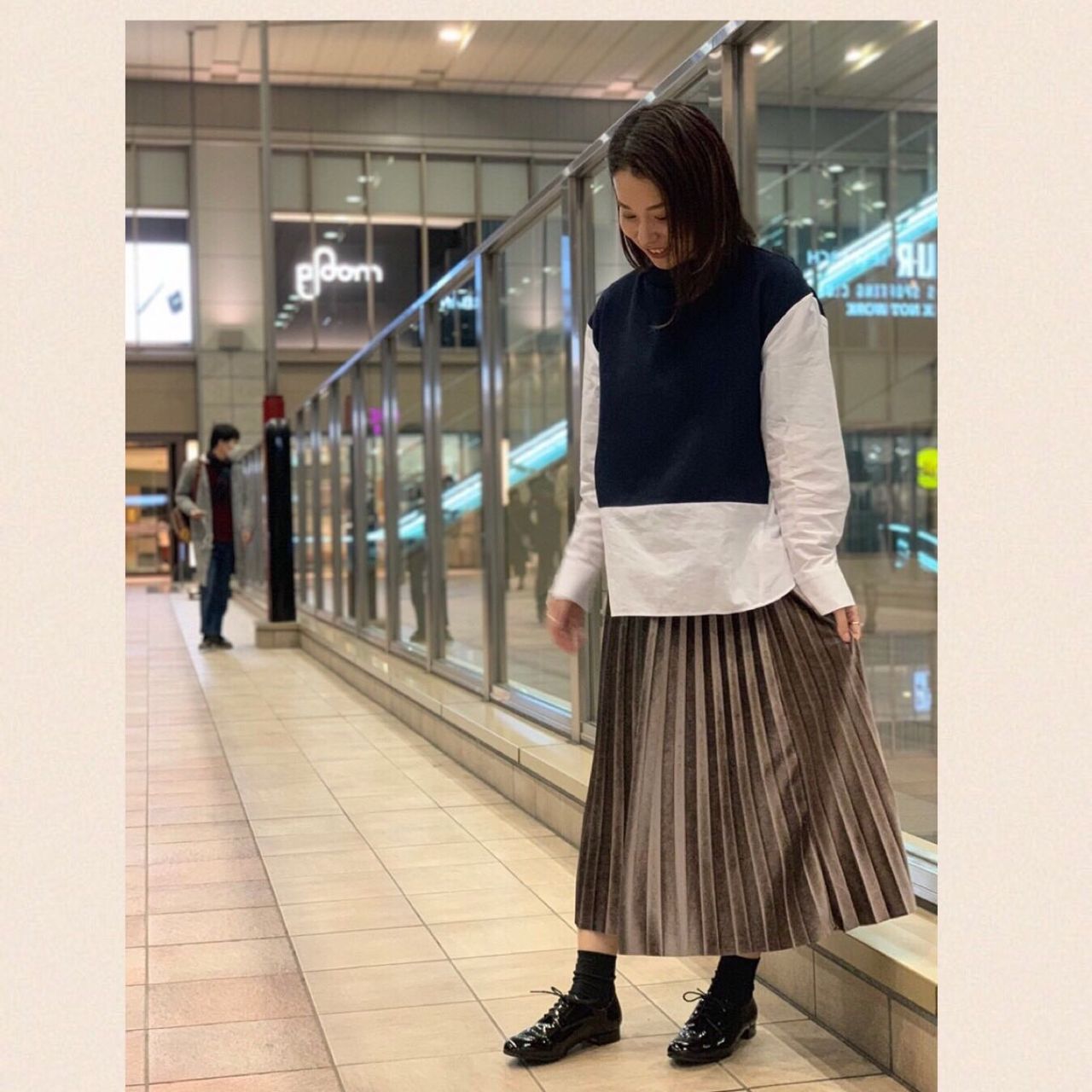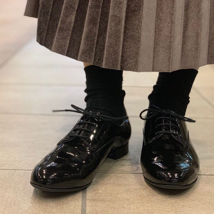 レインブーツだと合わせるファッションが決まりがちですが、レザーシューズだとパンツでもスカートでも幅広く合わせられますよね♡