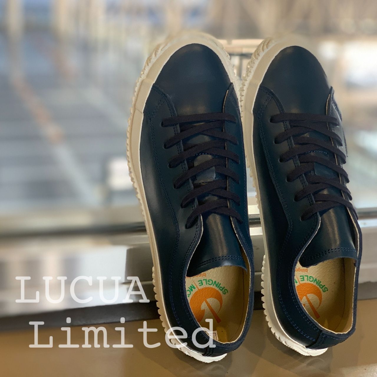 シューレースもネイビーにして、
