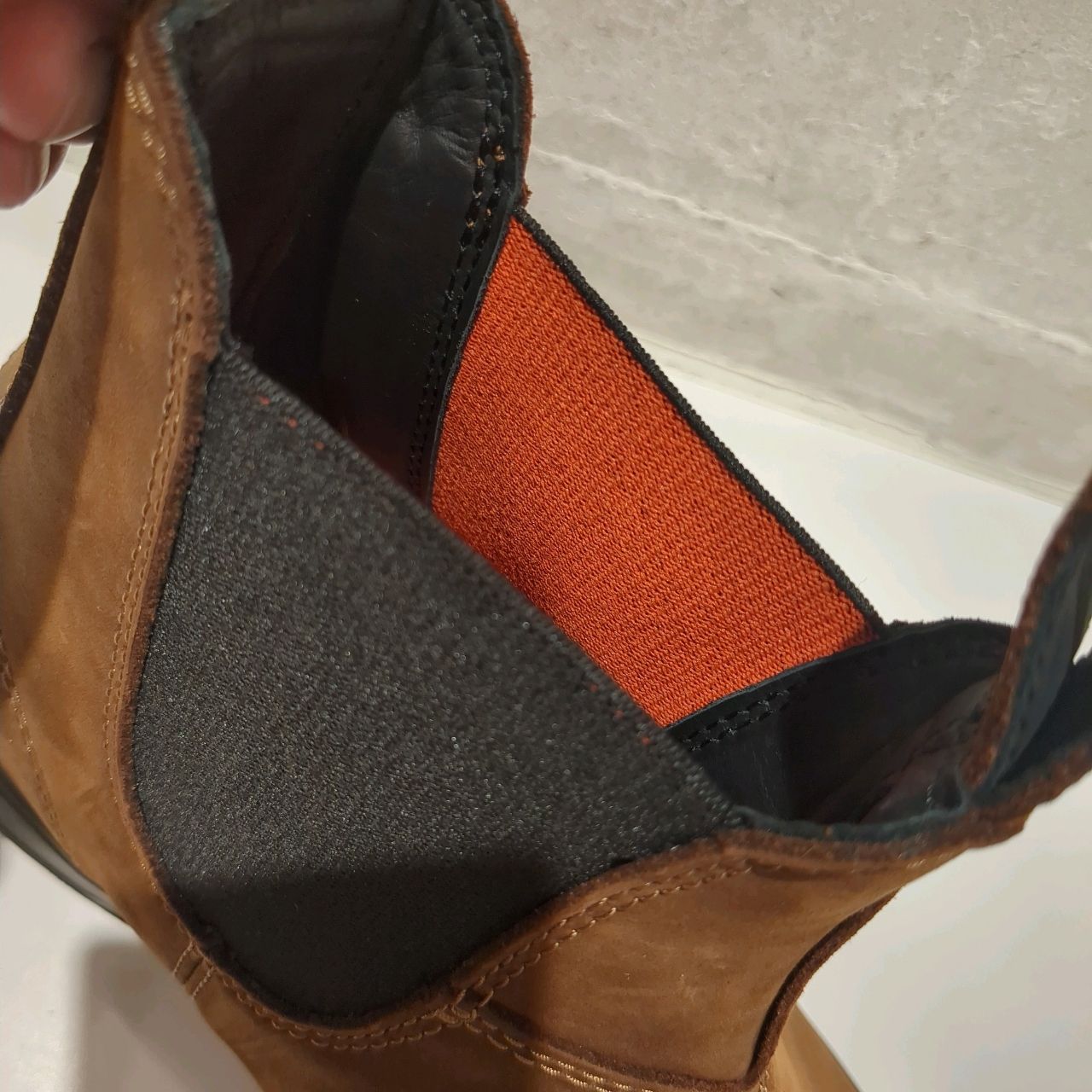 サイドゴアにも『ブレイズオレンジカラー』を採用。表面はブラックカラーです。