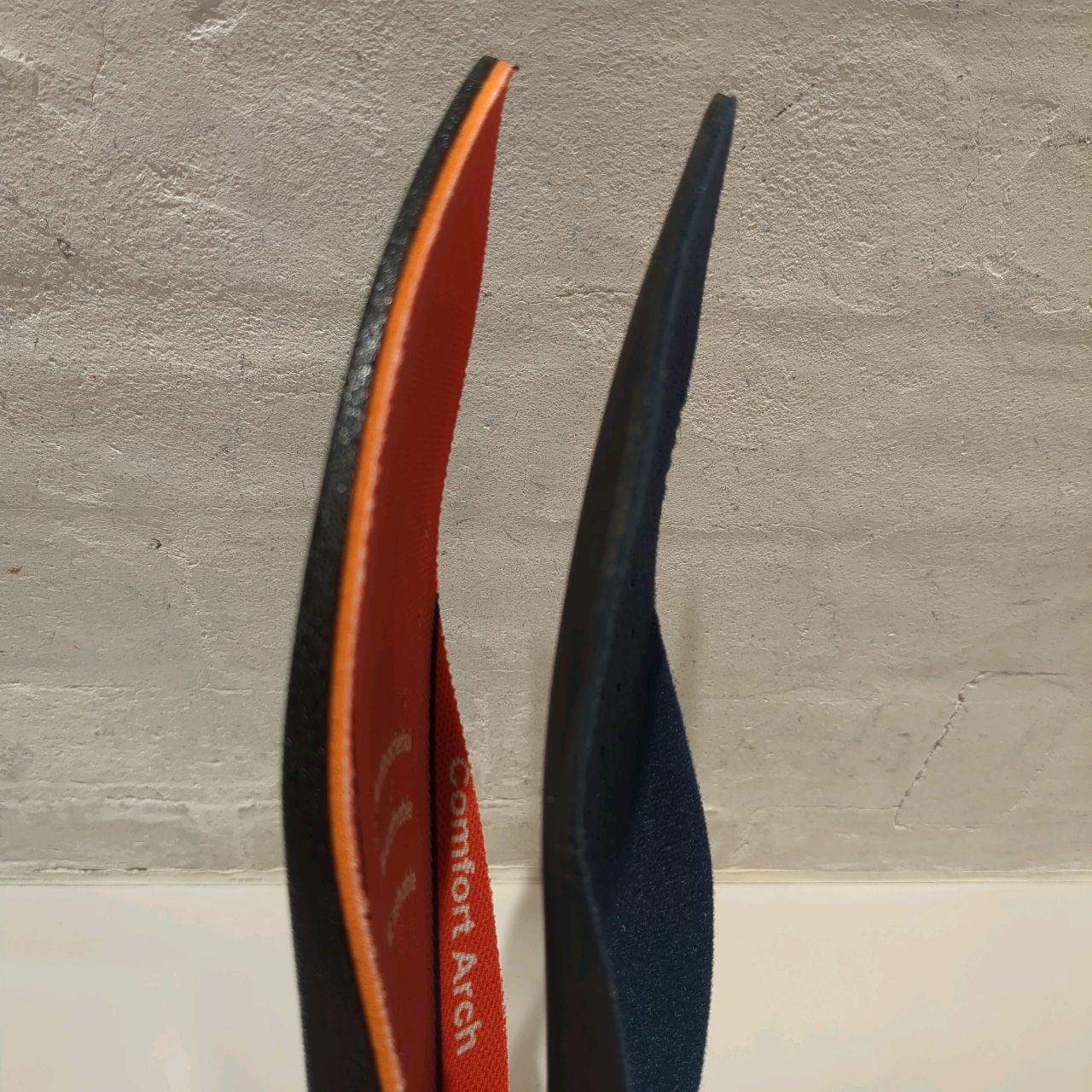 従来のインソール(右)よりも2倍ほどの厚みがありますね。