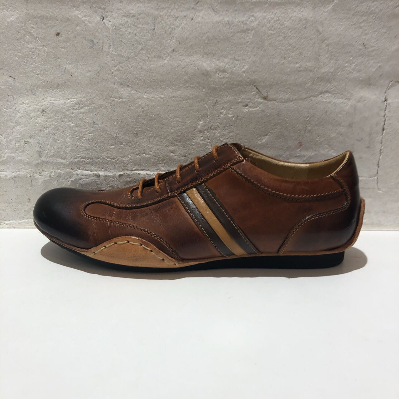 アッパーは全体に焦がし加工を施し、アンティークっぽい風合いの仕上がりです。