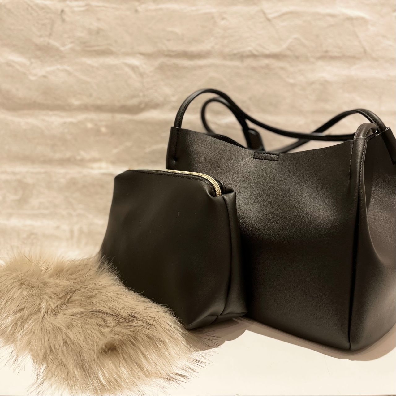 アンビリオンの取り外しが可能なファーフラップ付きトートバッグが入荷しました。