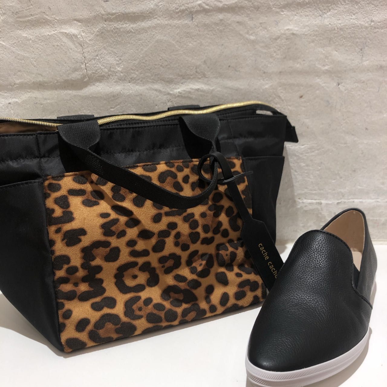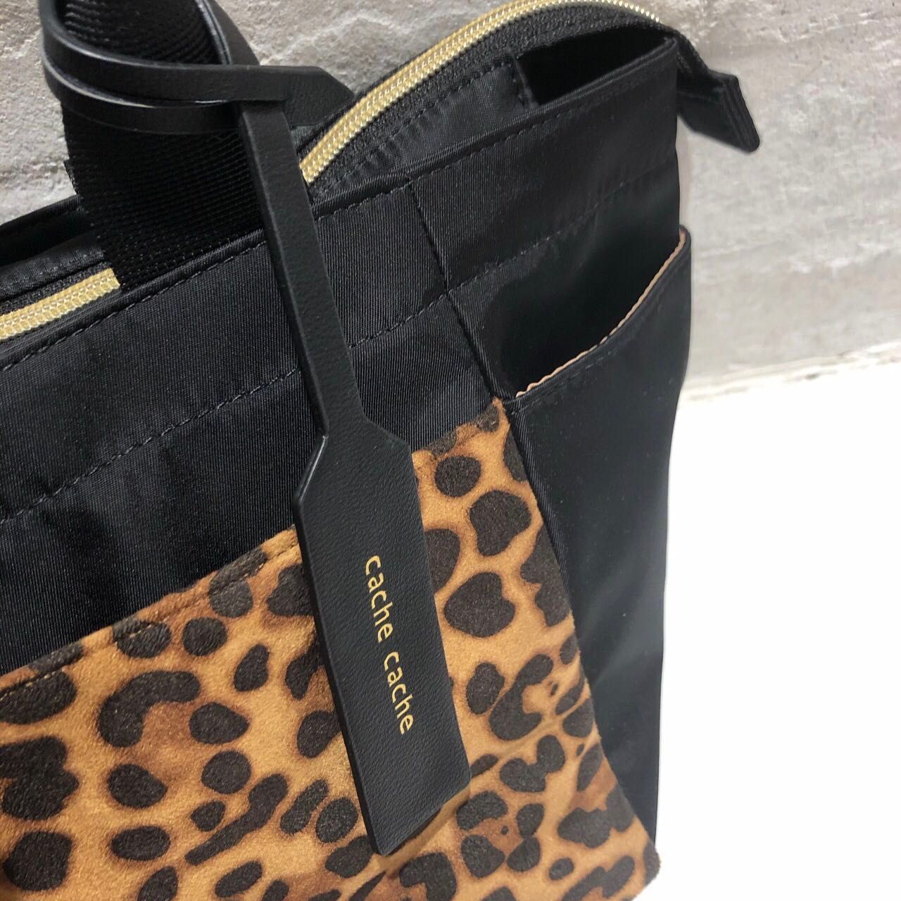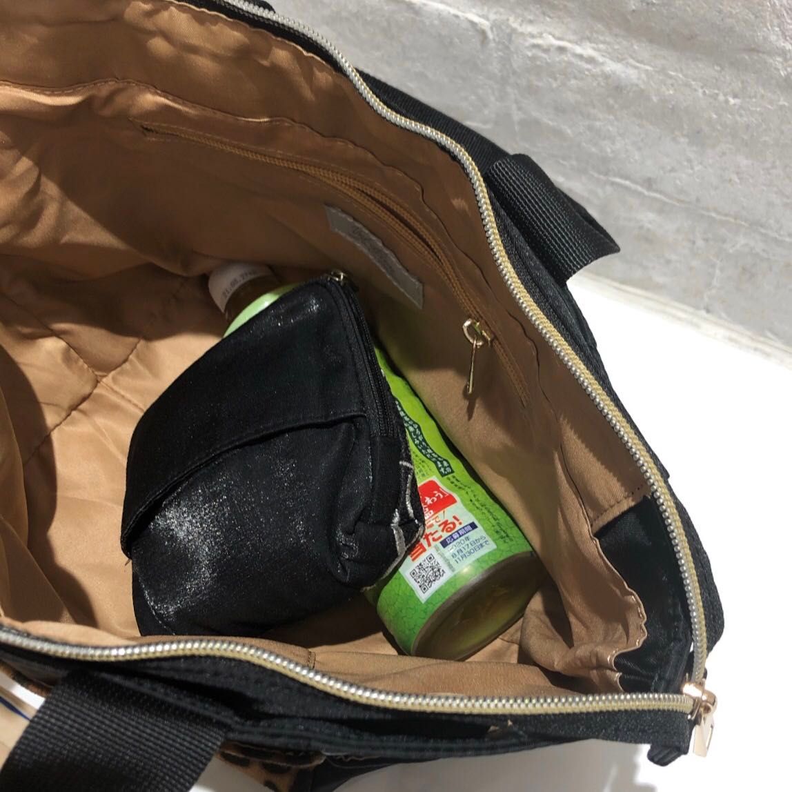 外側はレオパード柄部分や側面もポケットです!