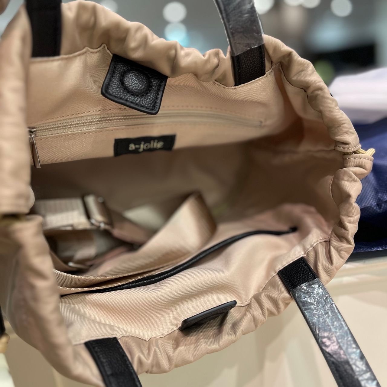 アジョリーのパールサングラスシリーズから、軽くてオールシーズン使える巾着トートバッグが入荷しております。