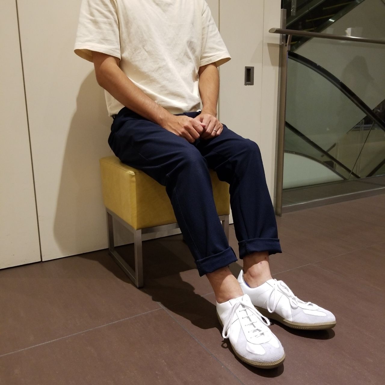 トレンドである、Tシャツをタックインしたコーディネートに合わせてみました。