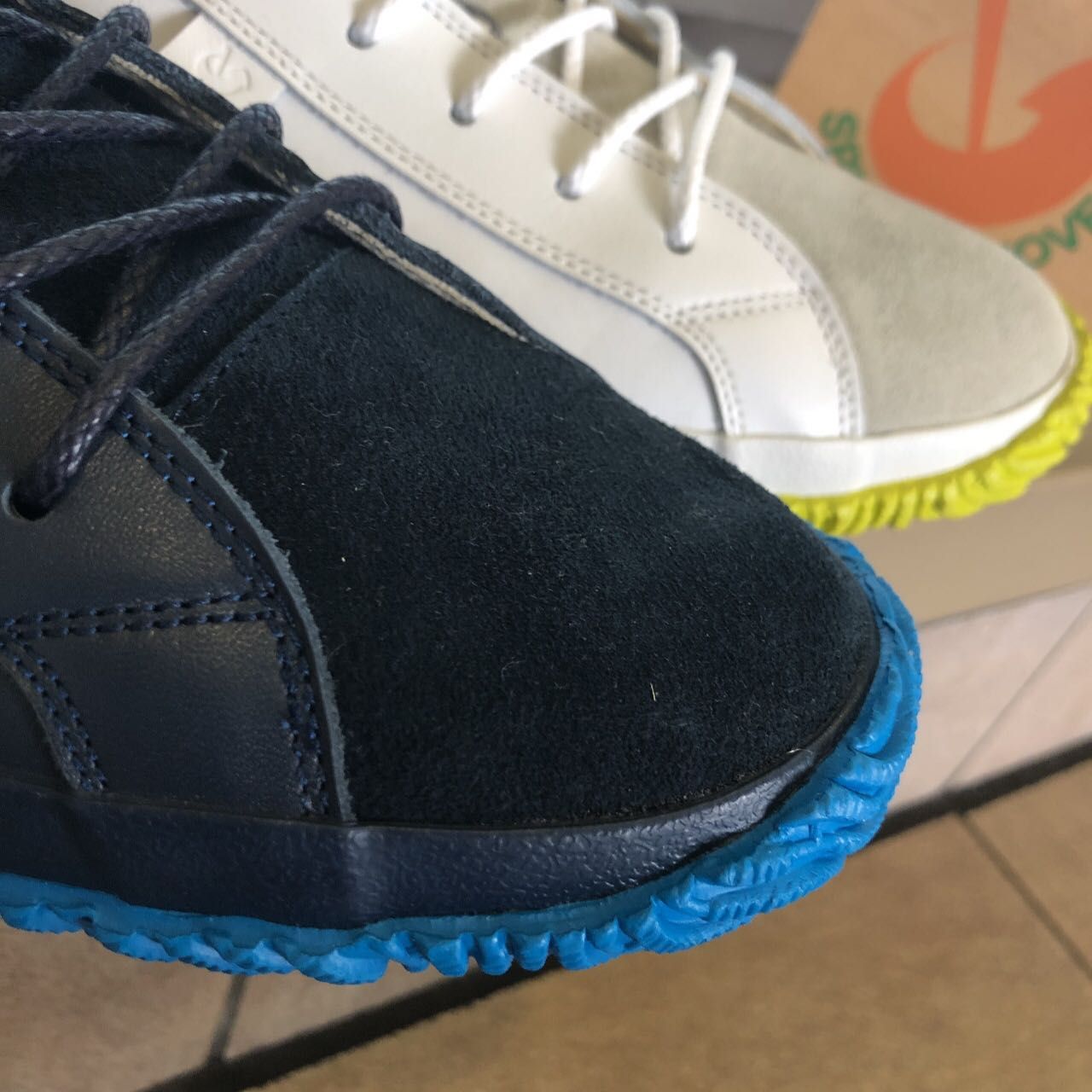 アッパーはスムースレザーとベロアのカジュアルなコンビになります。