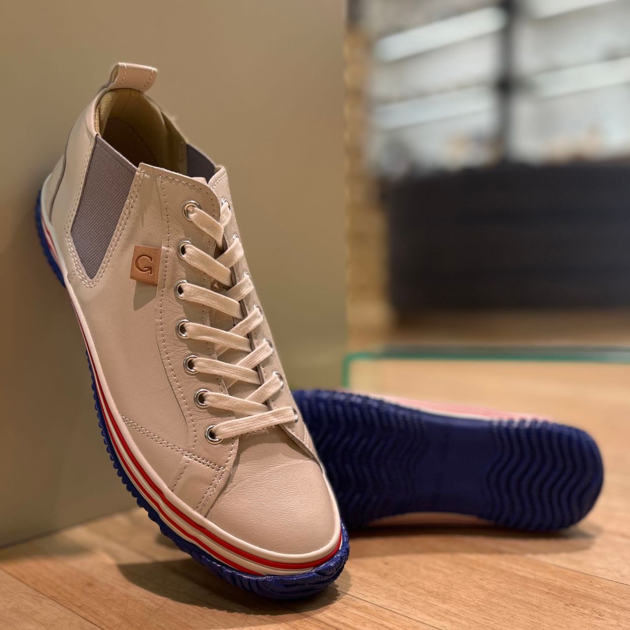 柔らかいカンガルーレザーと伸縮性のあるサイドゴアが柔軟性、脱ぎ履きのしやすさ、足首周りの程よいフィット感をもたらします。