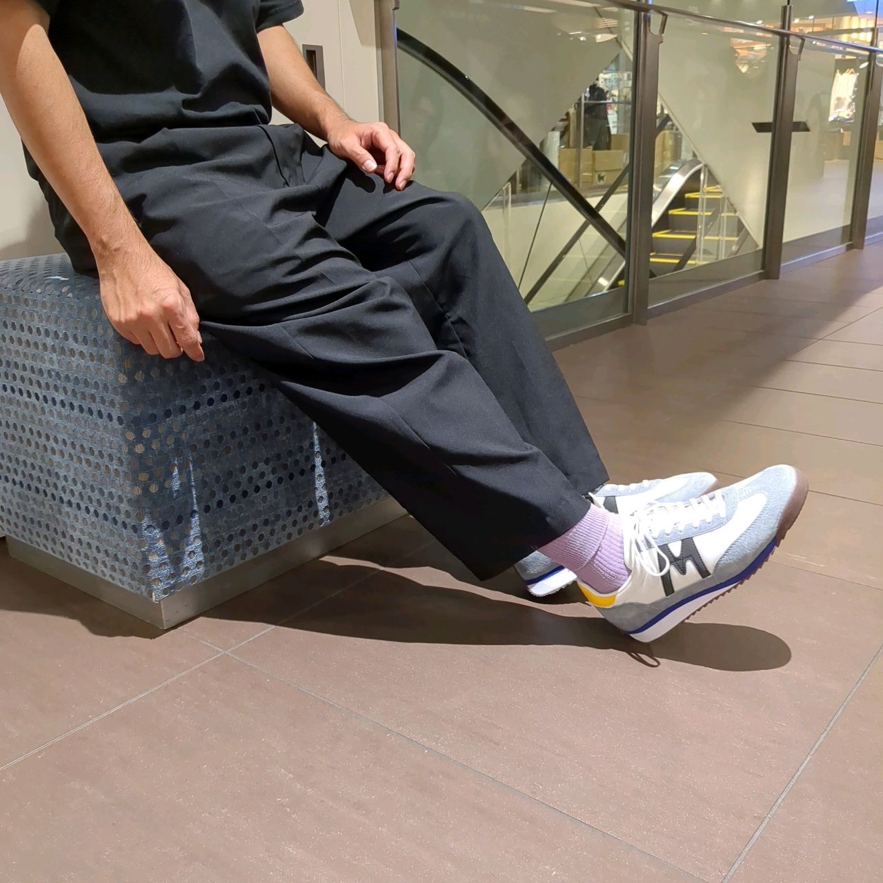 スニーカーのカラーをひろって、靴下や洋服に取り入れるとコーディネートもしやすいですね。