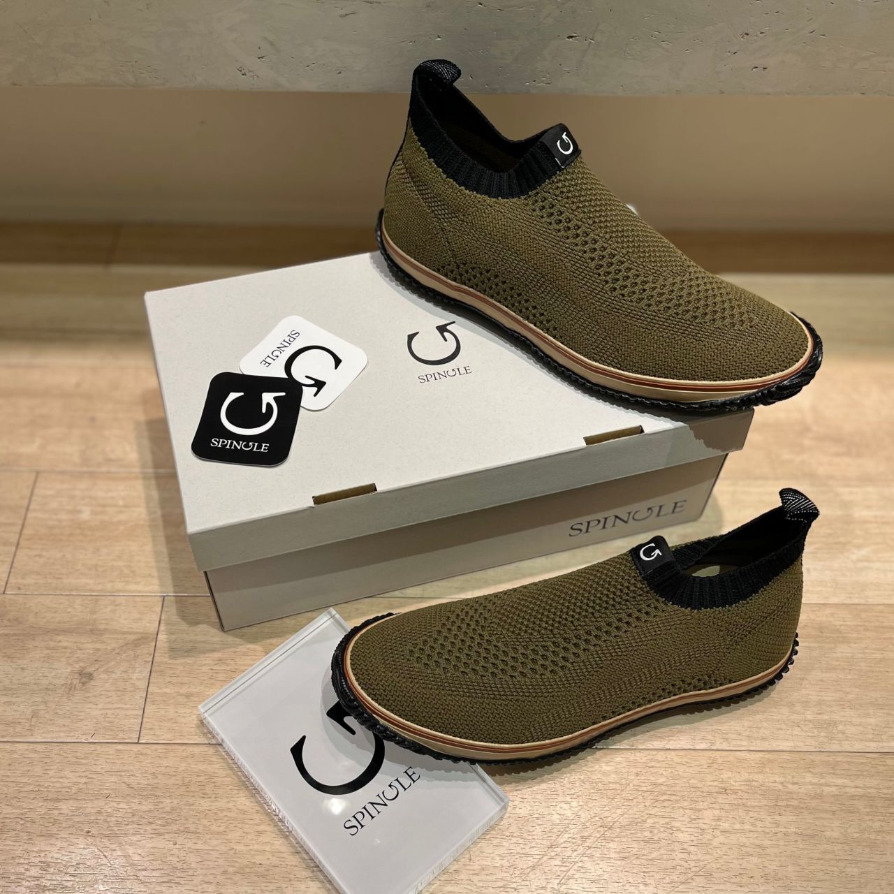 スピングルから、ナイロンのジャガード織りニットを使用したスリッポンモデルが入荷しております。