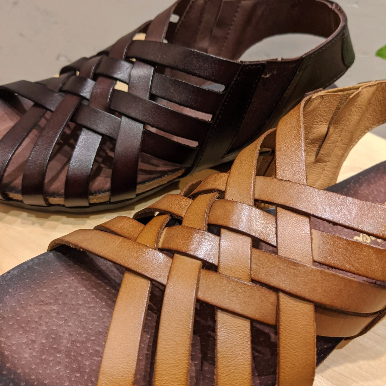 このサンダルの魅力はなんといっても、甲を覆う編み込みデザイン↓↓