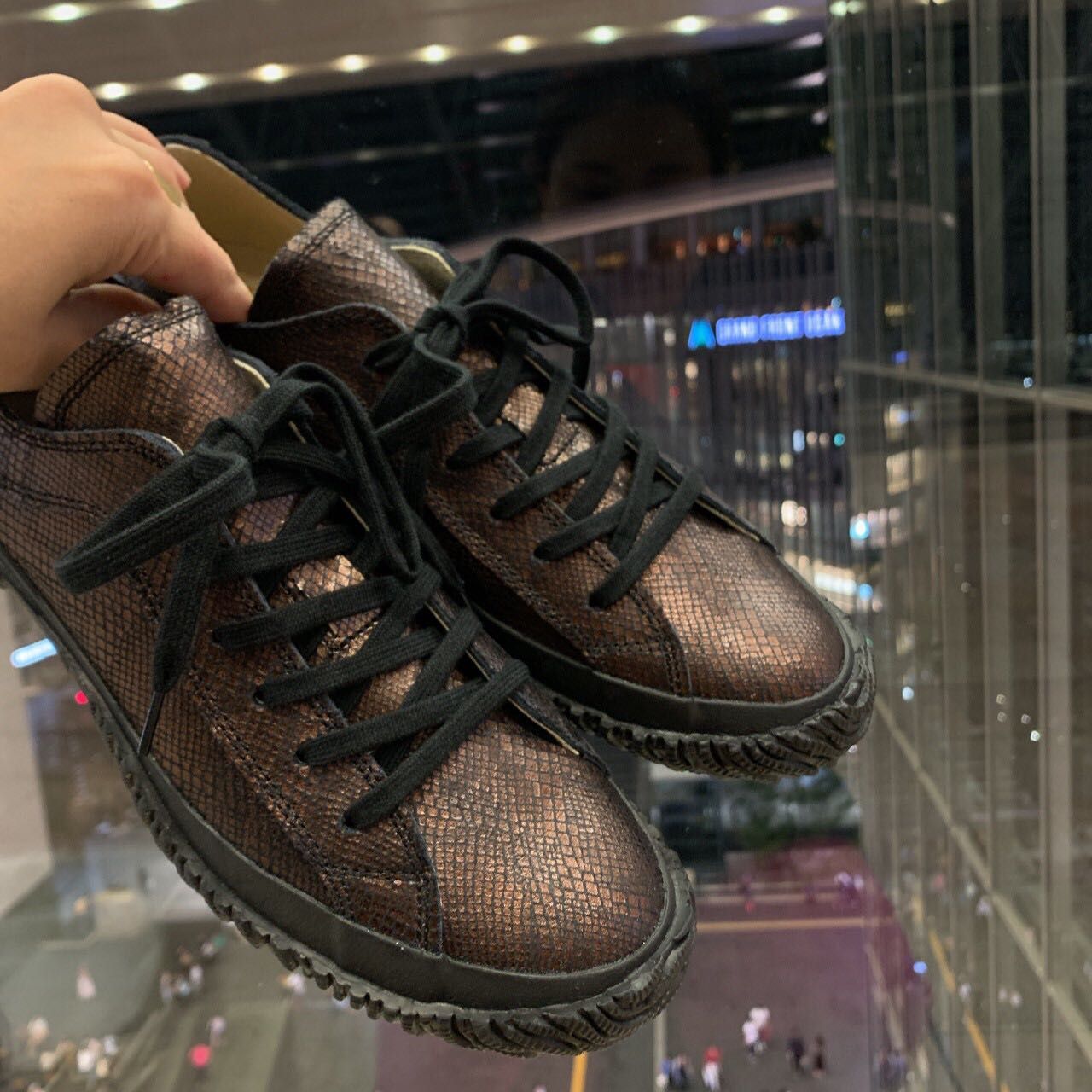 こちらもメタリックなレザーにブラックのシューレースがすごくオシャレです!