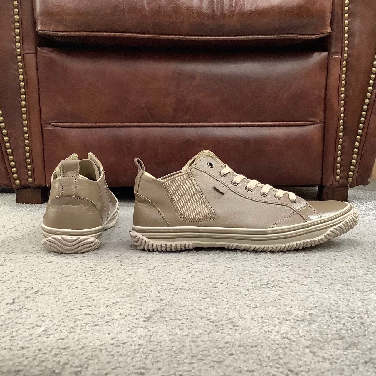 サイドゴアとフォクシングテープのラインは同系色、アウトソールとシューレースはダークベージュ系なので統一感のある色合いで