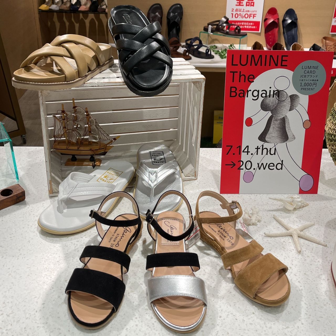 当店では夏物商品がお得になる他、靴・バッグ2点以上ご購入で更に10%OFFになります!!