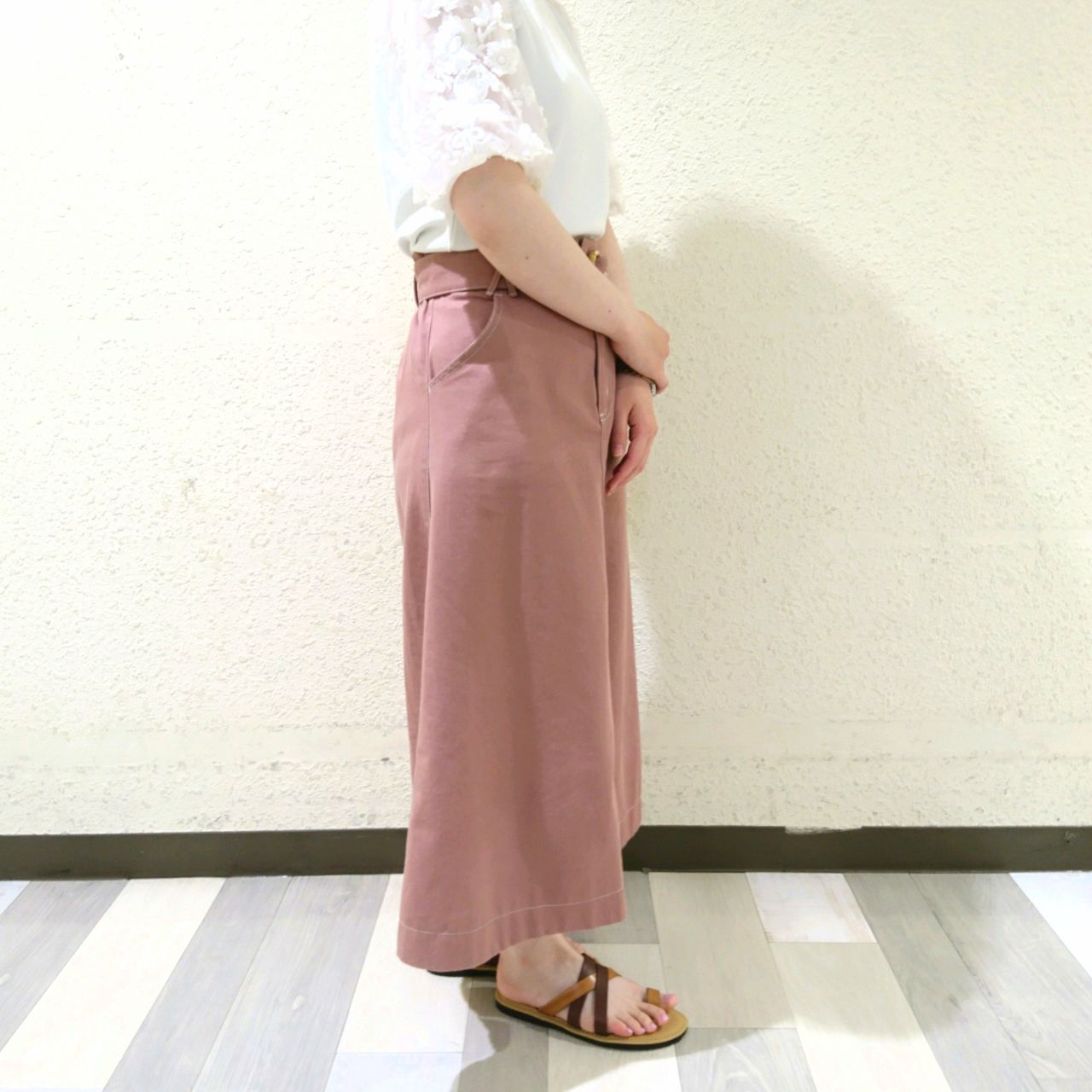 履いてみると、スカートでも合わせやすいです!女性らしいお洋服と合わせても、カジュアル過ぎずにコーディネートをまとめてくれます。