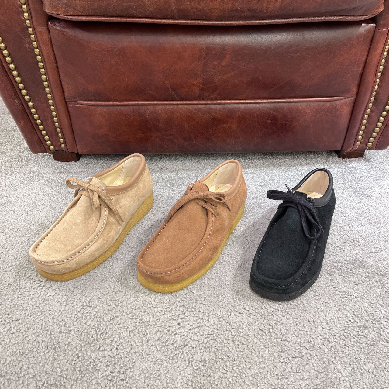 はじめは硬さが感じられますが、履くほどに足に馴染む製法で作られております!