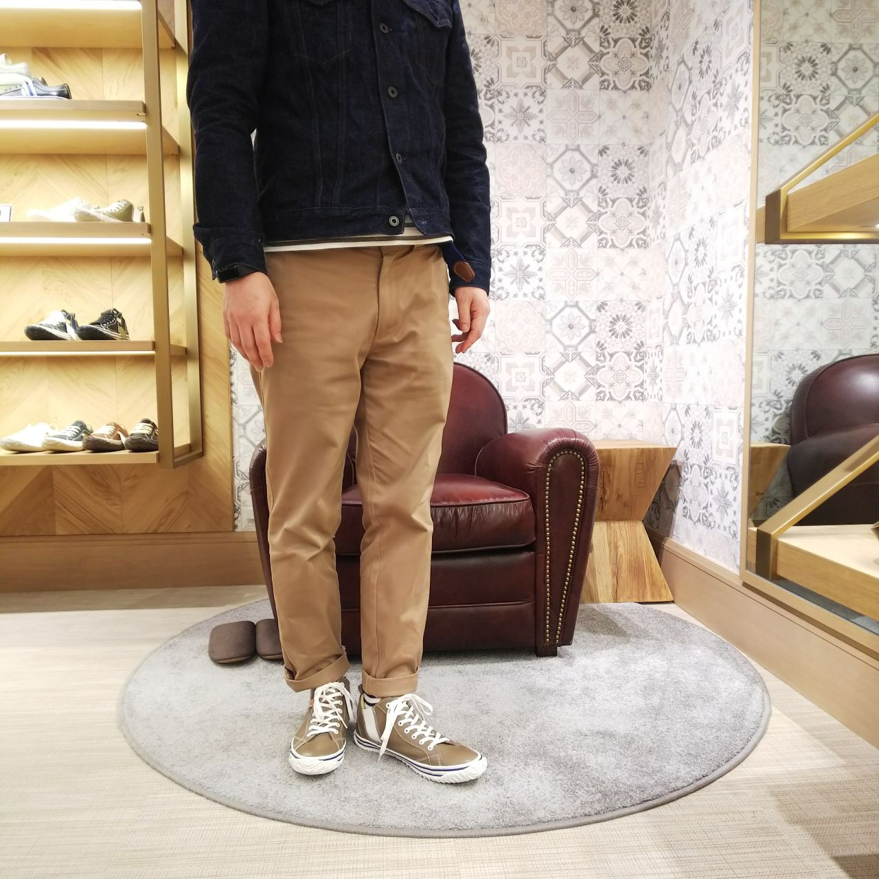 パンツの裾から見えるネイビーのラインが、とてもオシャレ。