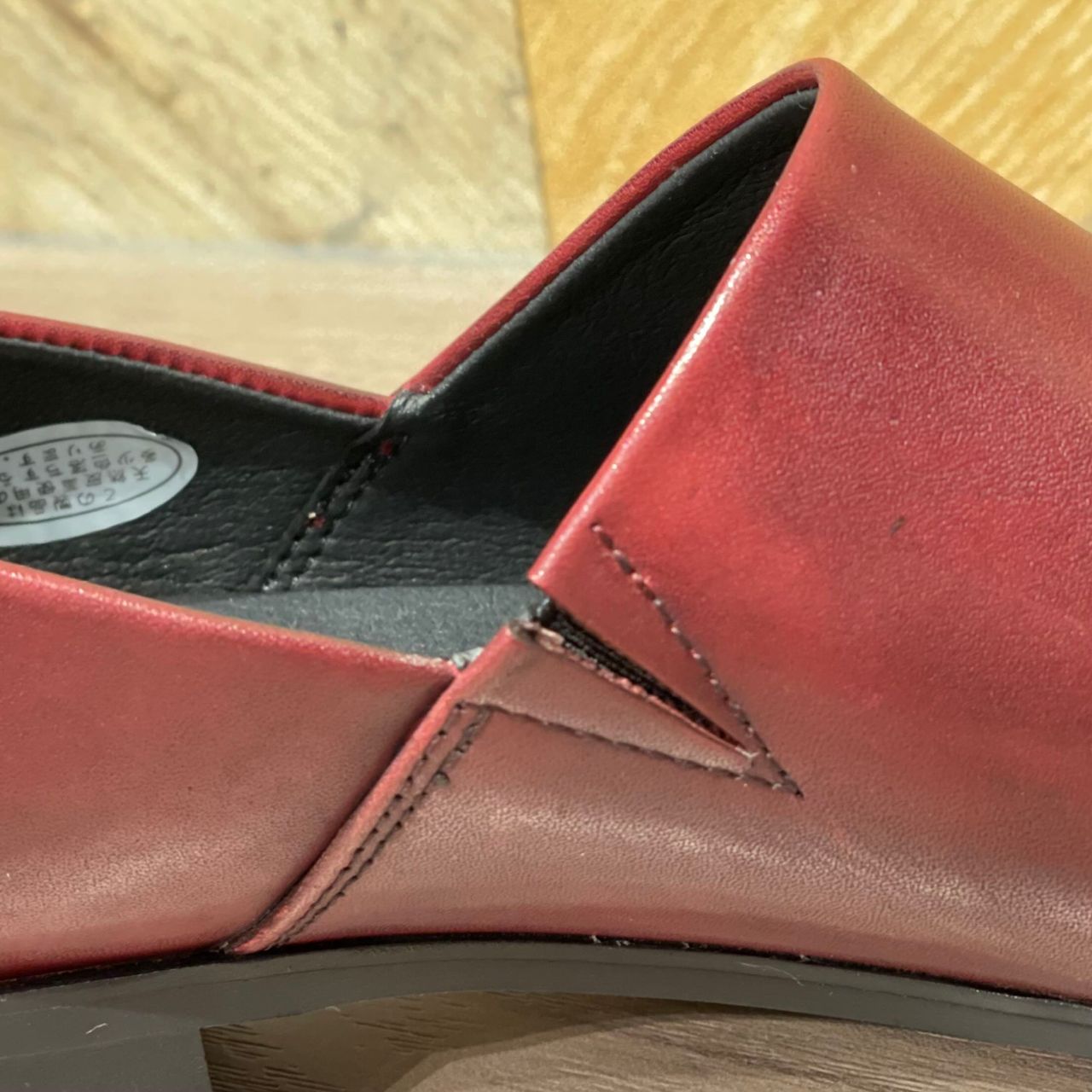 :全体的にゆったりとした、大きめな作りです。甲が薄い方や幅が細い方は中敷の使用もおすすめです。