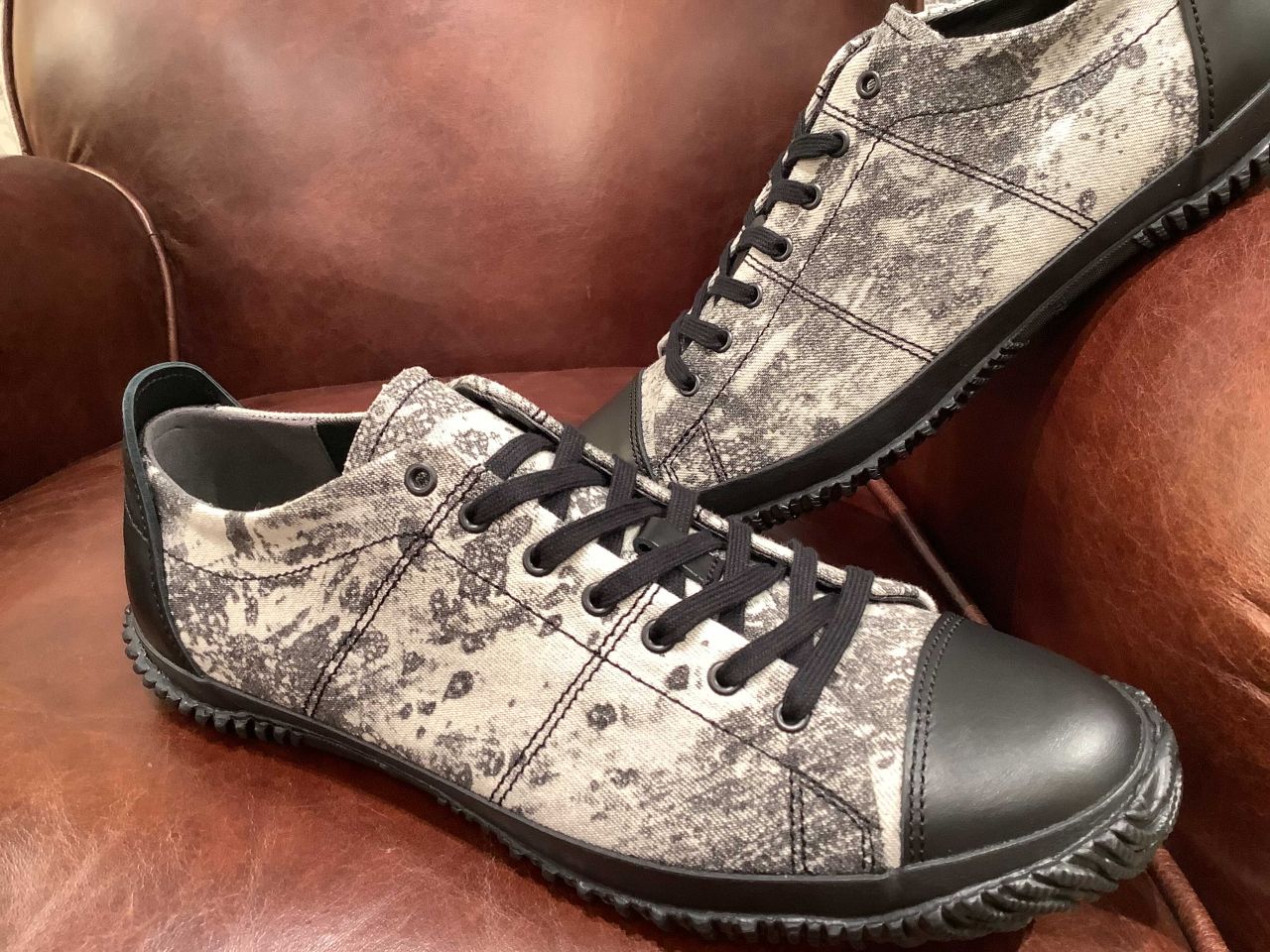 ①メイン素材は生地、爪先と踵部分はレザーのコンビ素材の為、M.Mowbrayのエイジングプロテクト(当店取り扱い有)でのお手入れがおすすめです。