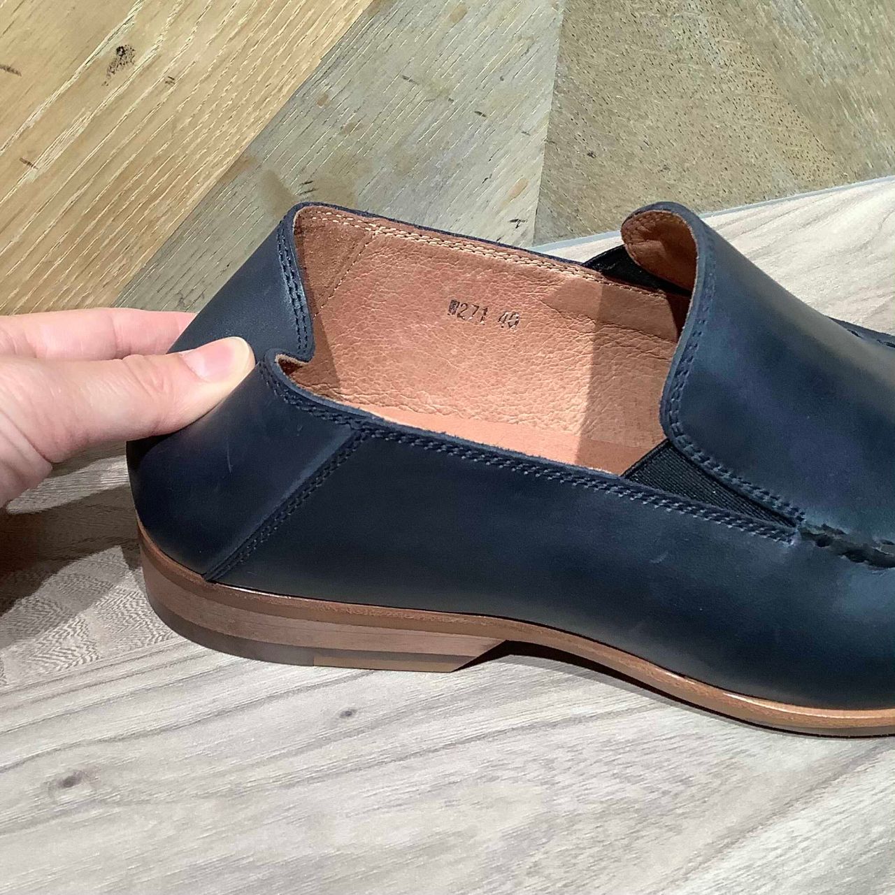 W271,W273どちらのスリッポンも踵部分は柔らかくなっています。ソフトレザーならではの優しく包み込むフィット感はリピートするお客様が多いのも納得です。