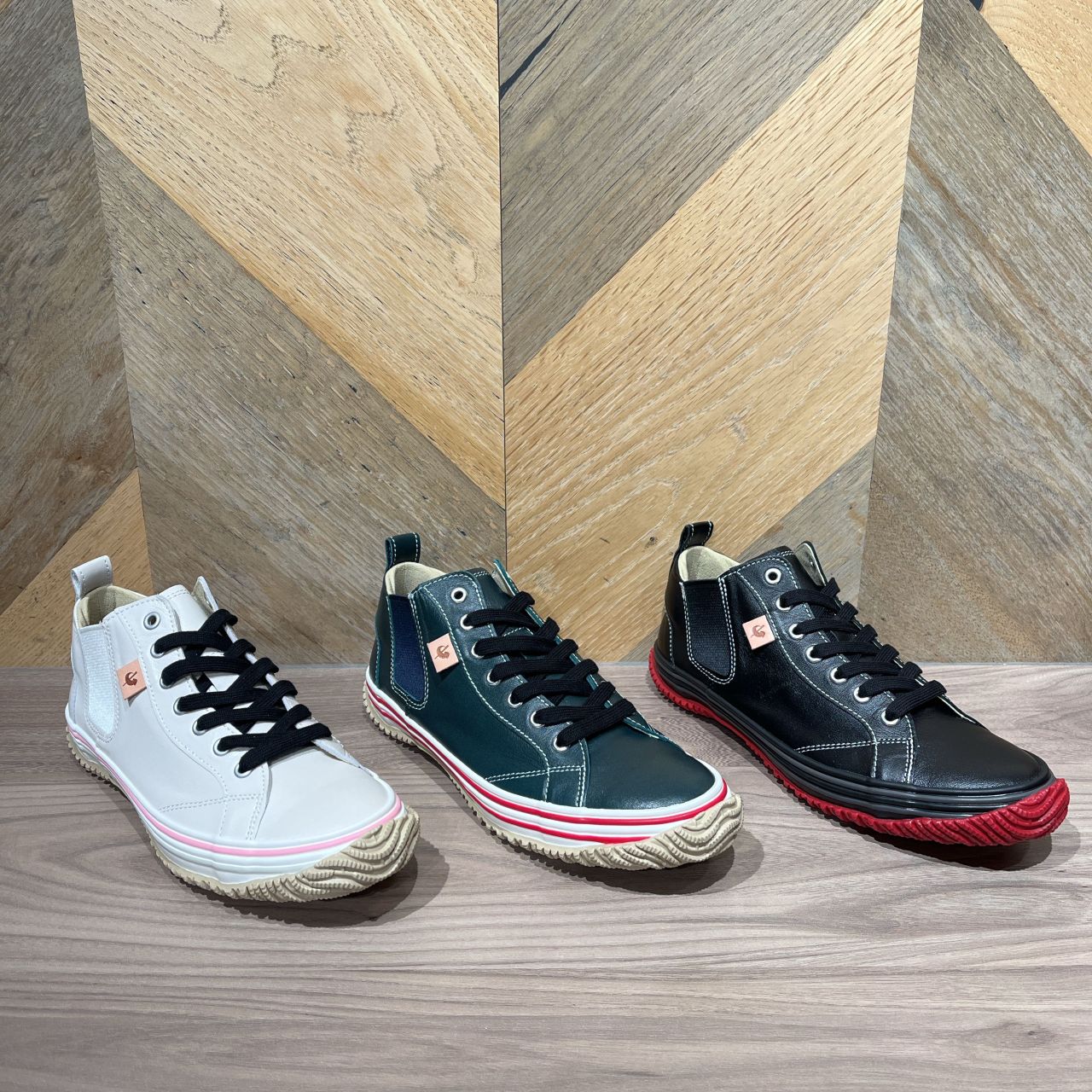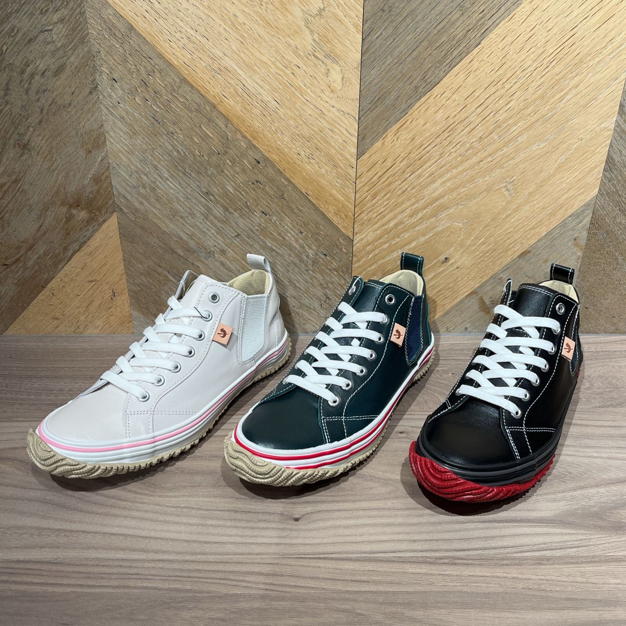 左から、BG/PK(05206)、WH/RD(05105)、BL/RD(05905) のカラーです。