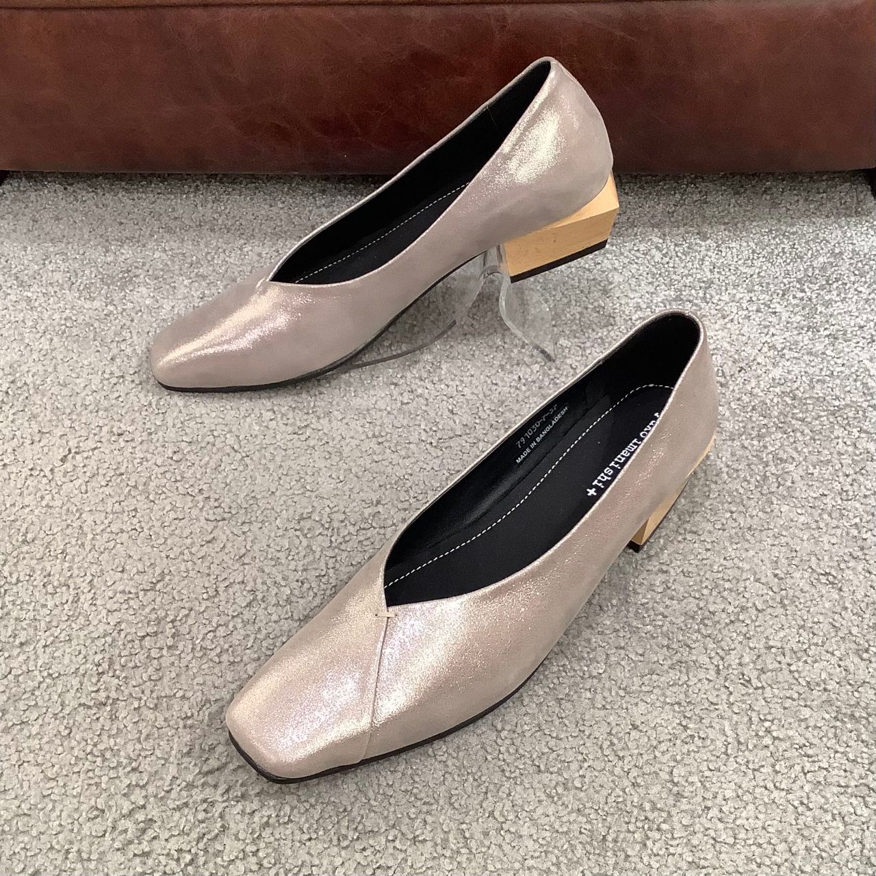 ウッド調のヒールが珍しく、履くだけで足元が映えるデザインです!