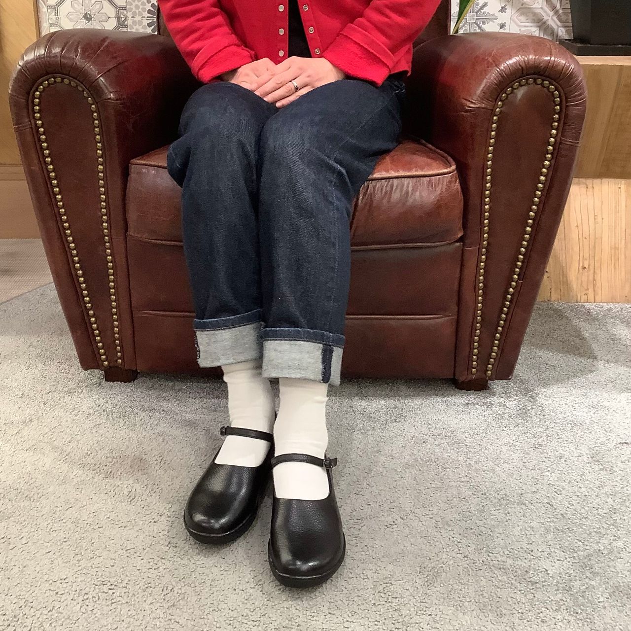 :指先はゆったり、踵や甲はフィットするので甲薄の足でも安心感のある履き心地です。