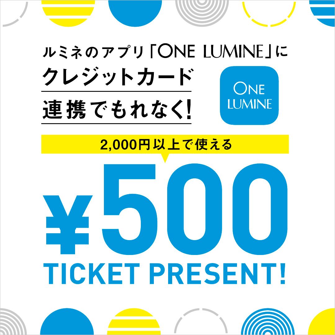 ルミネのアプリ『ONE LUMINE』にクレジットカード連携して頂くと\2,000以上で使える\500チケットをプレゼント!