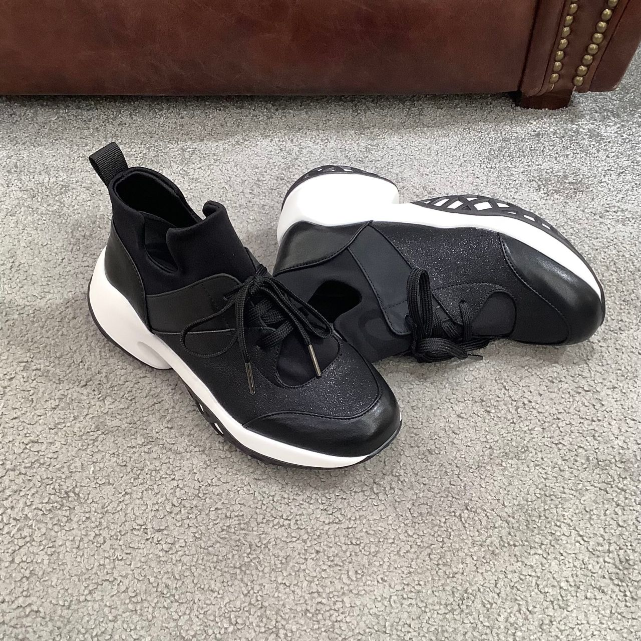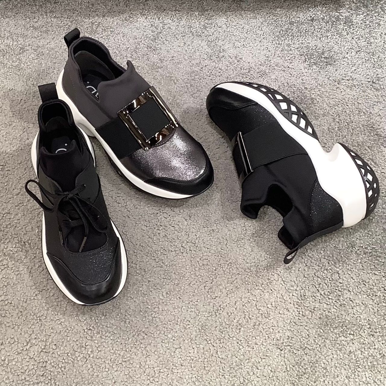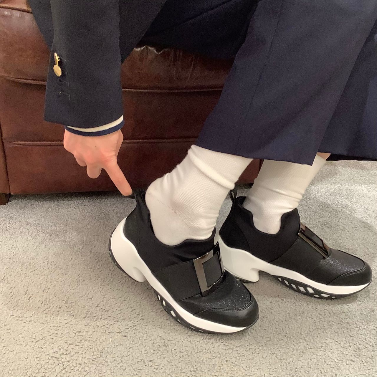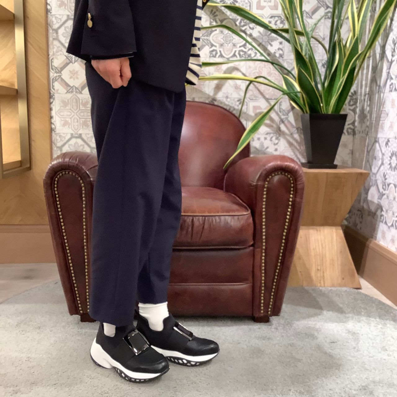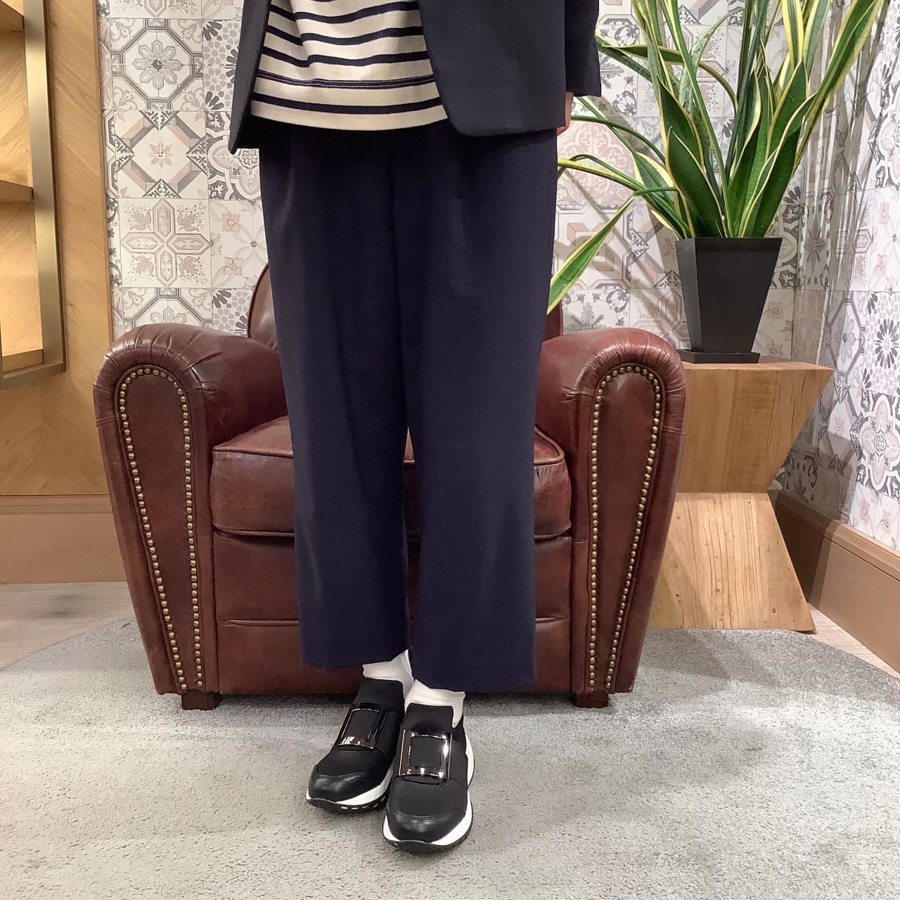 程良いボリューム感のアウトソールと、キチンと見えるデザインはスカートやワンピースなどのフェミニンスタイルにもお薦めです。