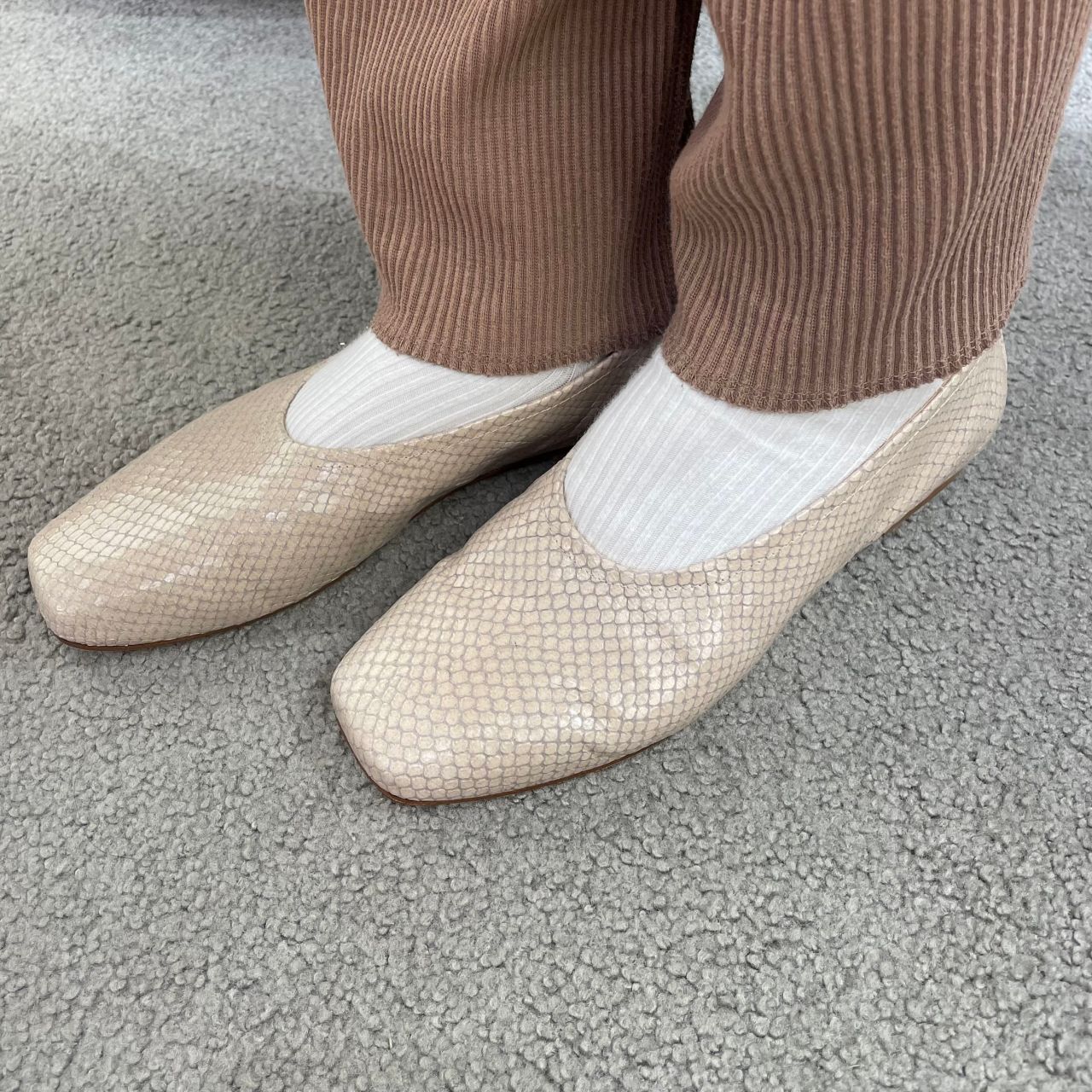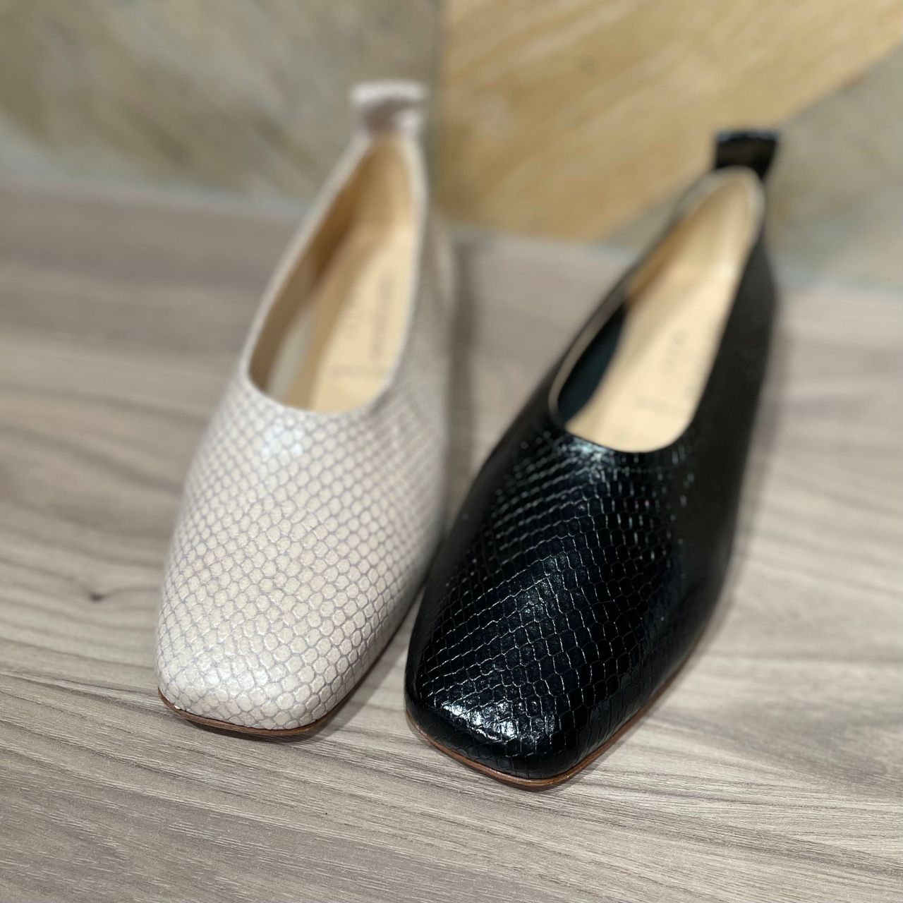 シンプルなボトムスの時は、型押しを合わせるだけで足元に動きが出るので、雰囲気を変えたい時にもぴったりです。