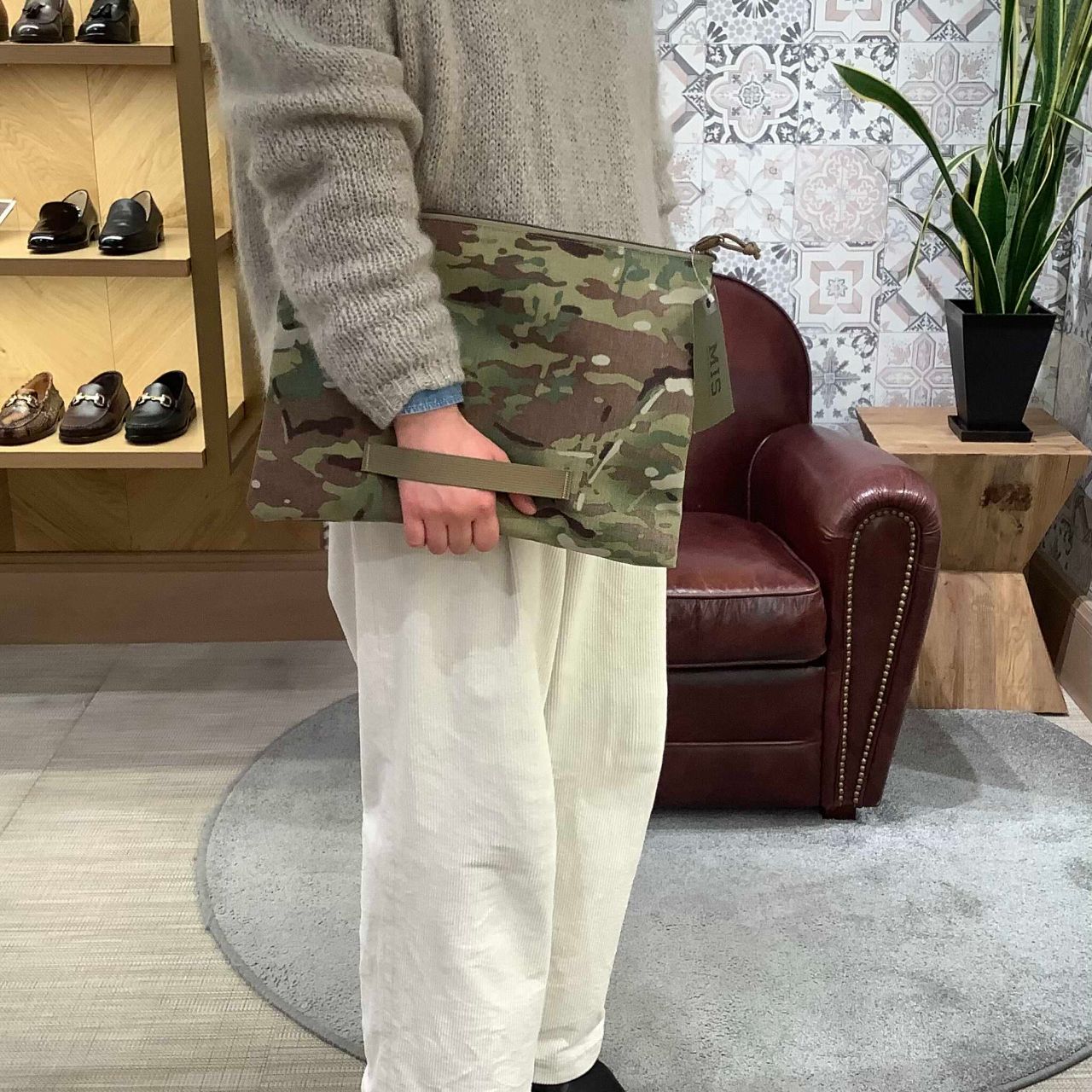 耐水性のウレタンコーティング加工のデュポン社製1000デニールのコーデュラナイロンを使用。背面にはウェビング素材の持ち手付きです。(大)13インチのノートPC収納可能。(小)はタブレット収納可能です。