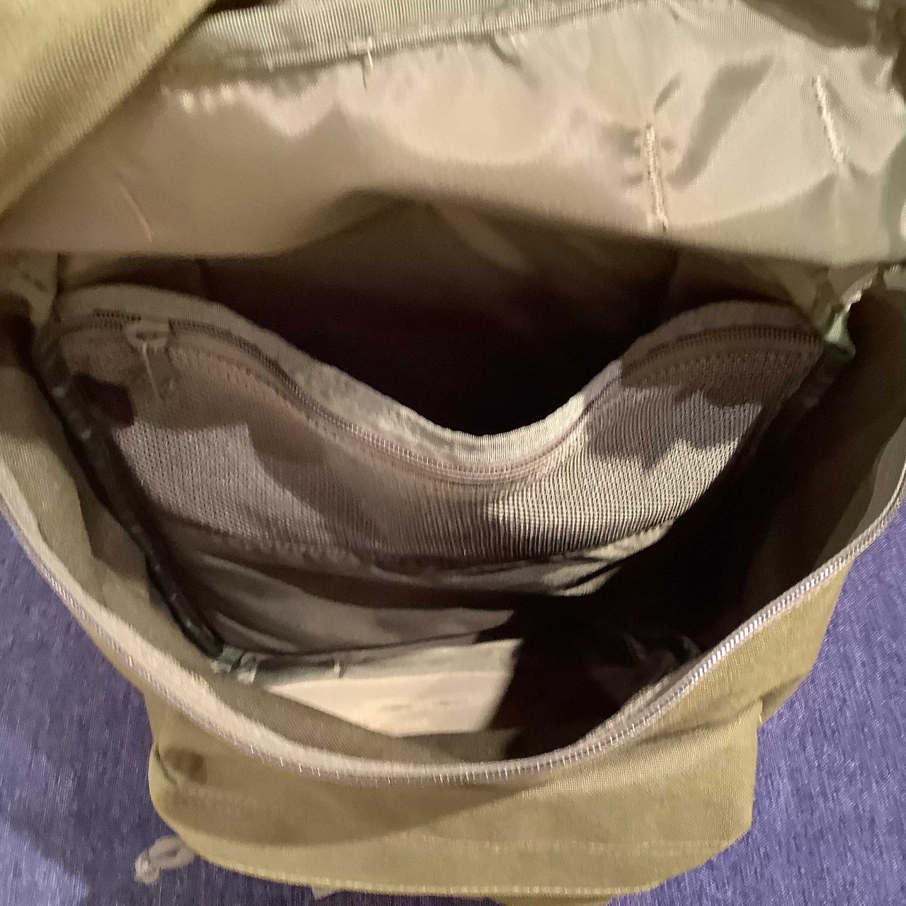 耐水性のウレタンコーティング加工のデュポン社製1000デニールのコーデュラナイロンを使用。裏地には耐水性のあるナイロンを、底面にも防水布使用しておりミリタリースペックを全方面に感じられます。両サイドは調節可能なストラップ付で2Wayの見た目で使えます。