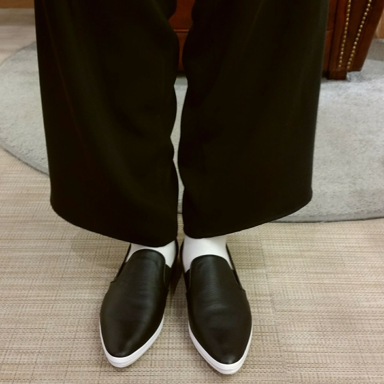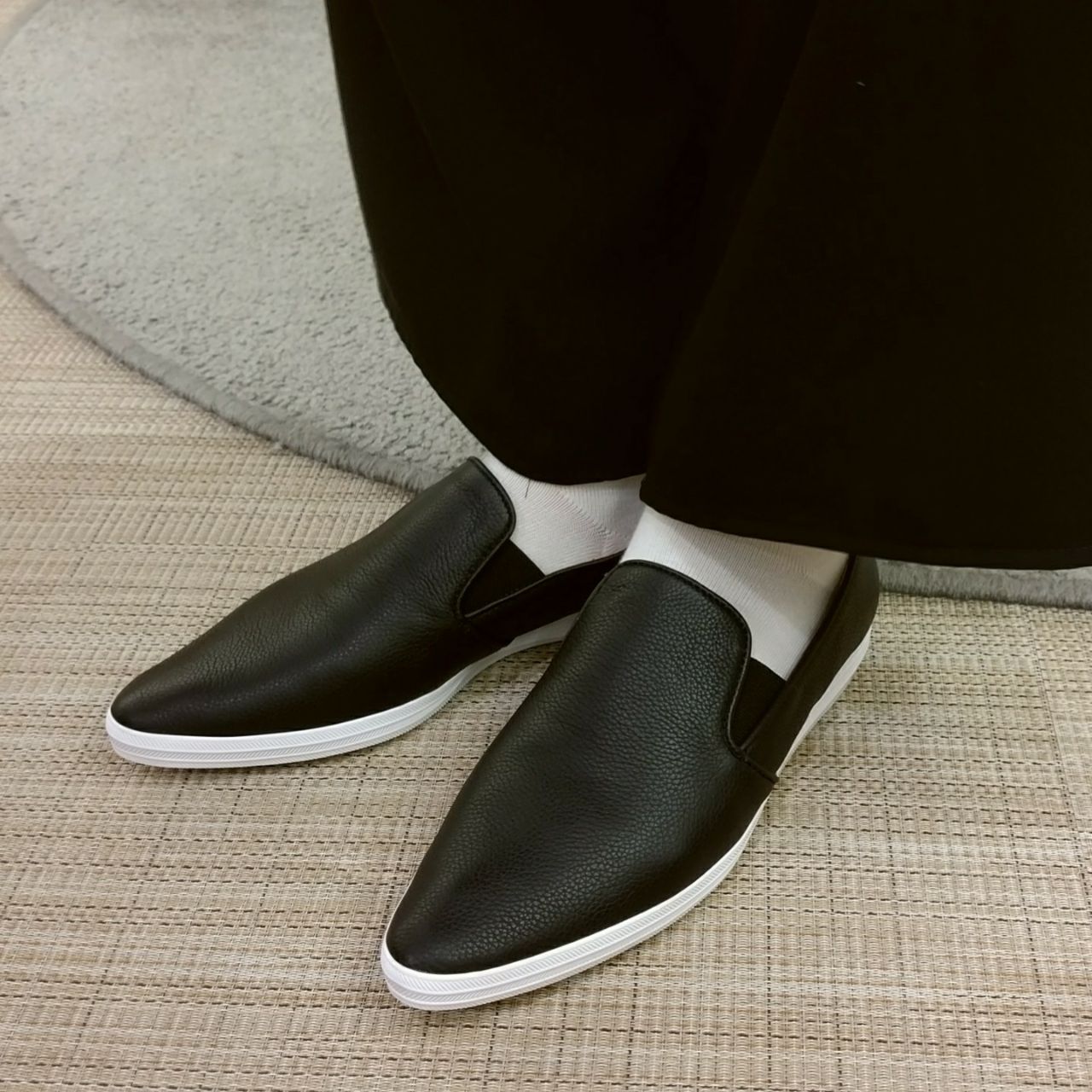 スニーカーですが、つま先がすっきりしたシルエットなのでカジュアル過ぎずキレイめに見えます。