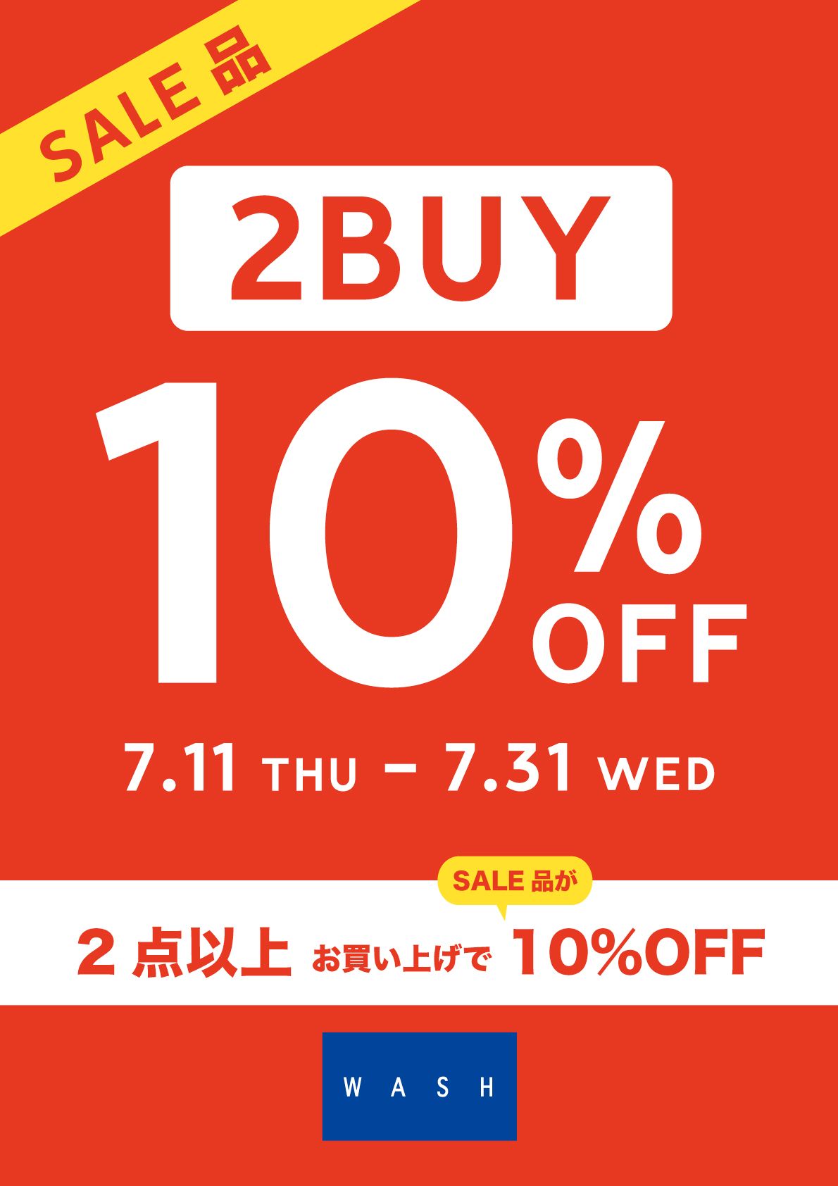 2点以上のお買上で、SALE品が更に10%OFFに。