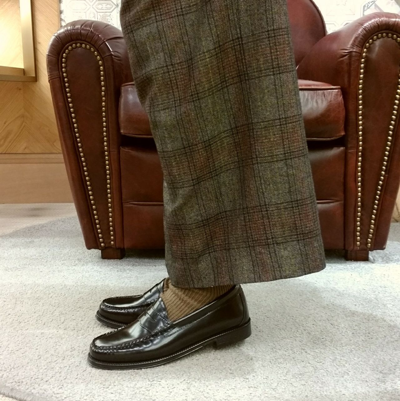 チェックパンツと合わせて王道のトラッドスタイルで◎
