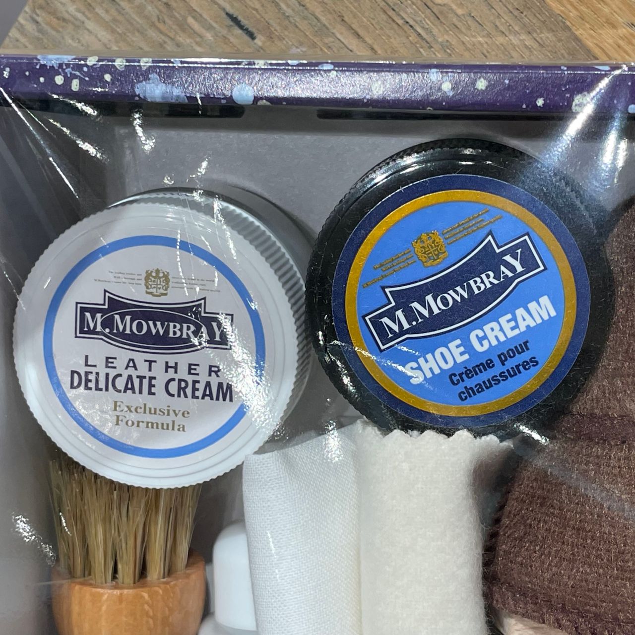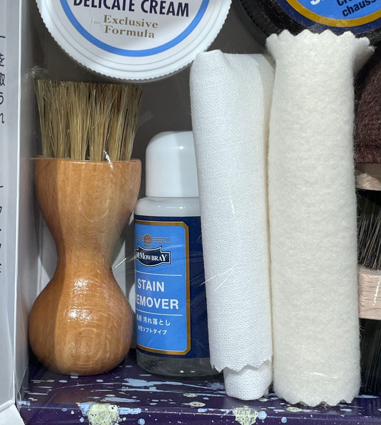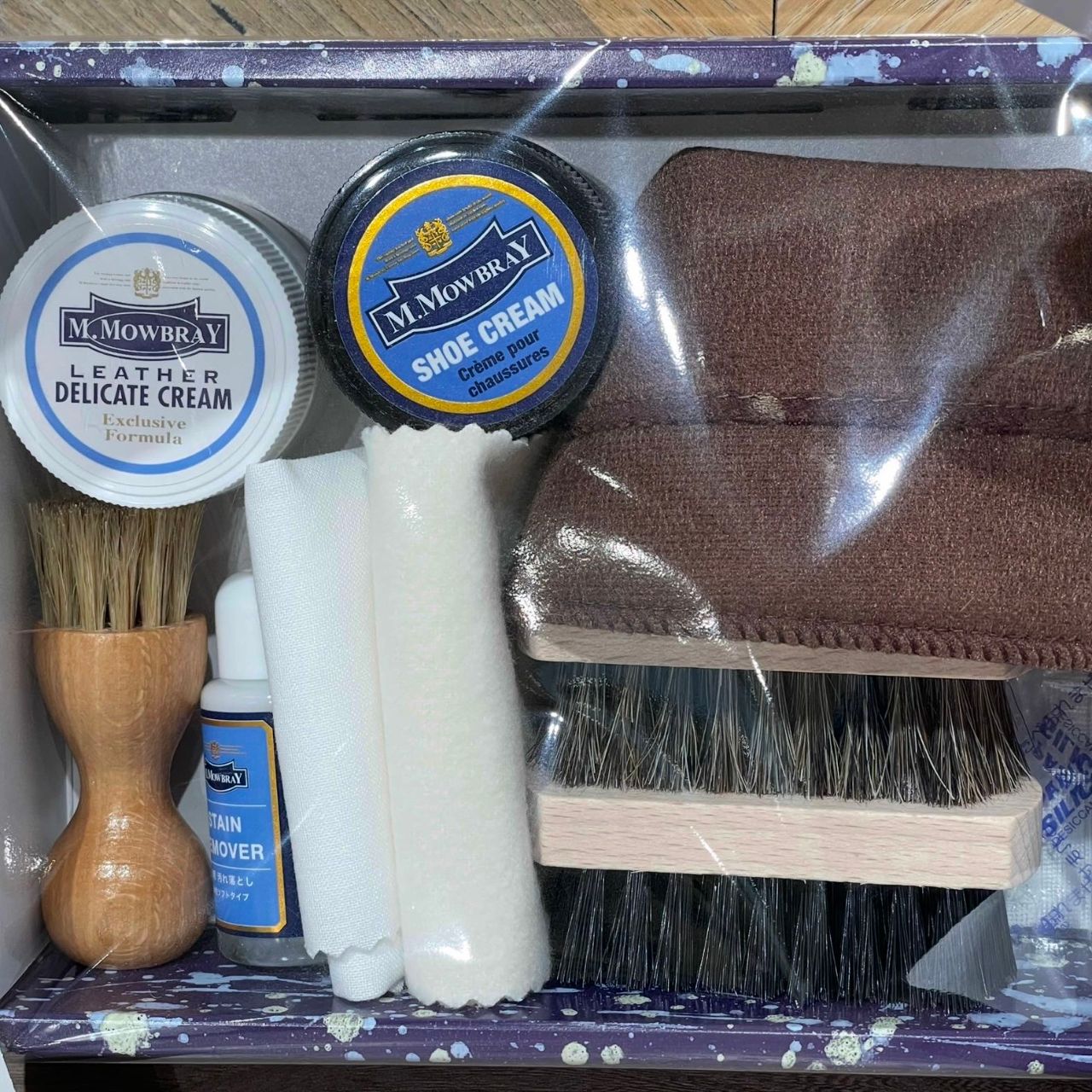 また靴磨きのミトンや、クリームを塗布する際に使うペネトレイトブラシは、現行品そのままの大きさが入って