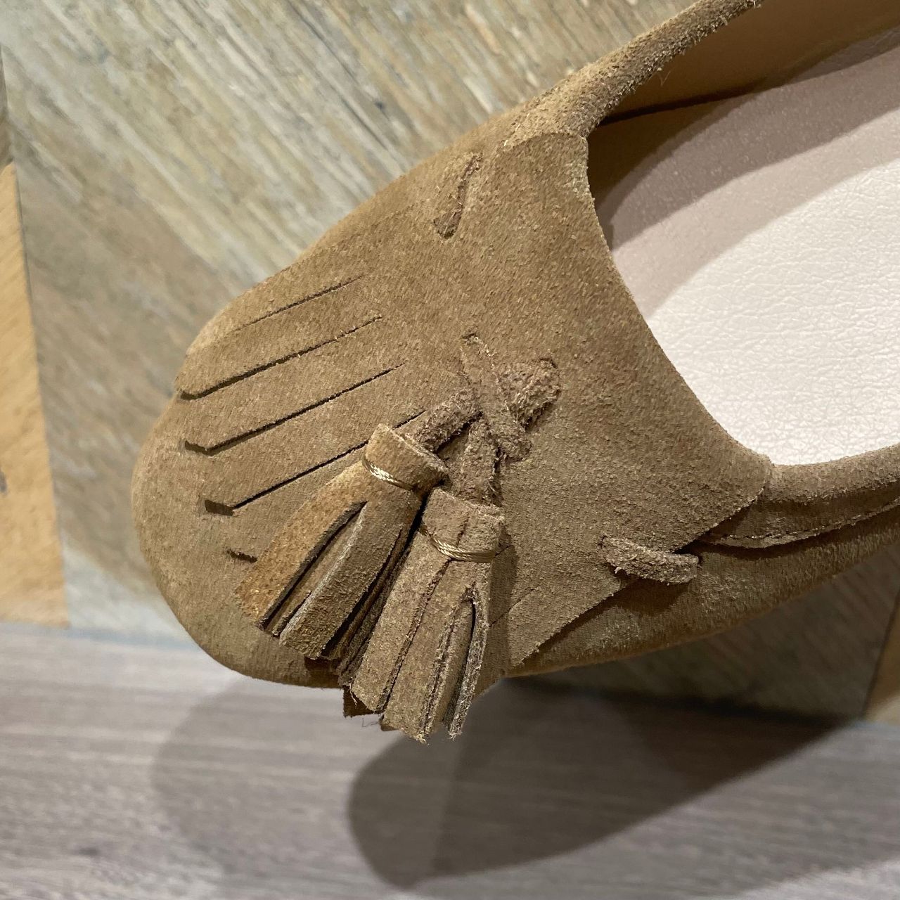 ほっこり感満載のスエード素材と、キルトタッセルのコロンと感がとにかくいとおしい。。。