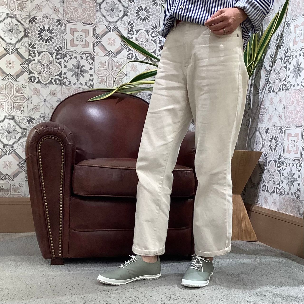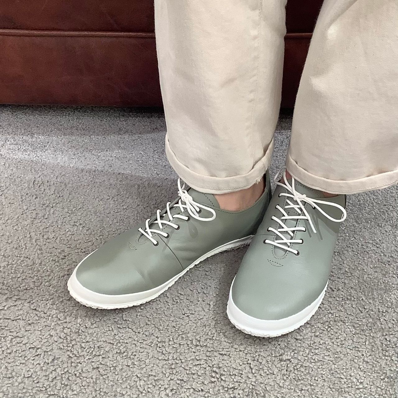 :スピングルの他のモデルよりやや細身に感じます。ストッキングや薄手のソックスでちょうど良い履き心地です。