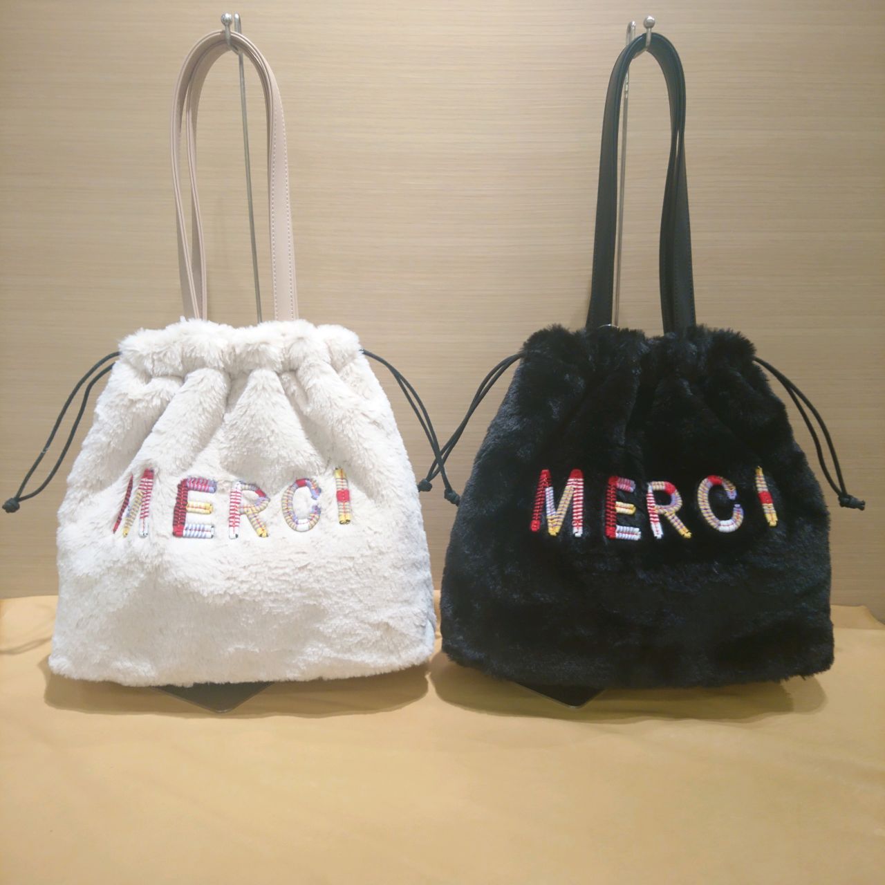「MERCI」のカラフルな刺繍がポップで、とてもお洒落!!