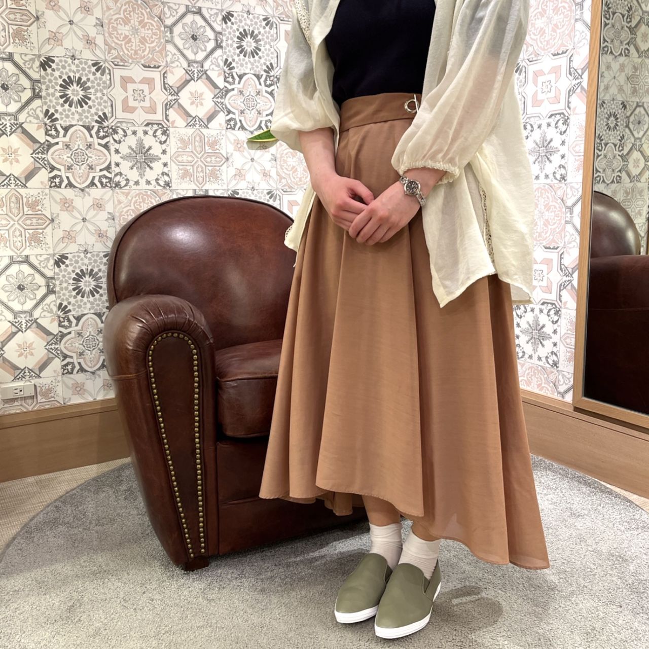 グリーン系は今季トレンドカラーなので、取り入れるだけで今年らしいコーディネートになります!