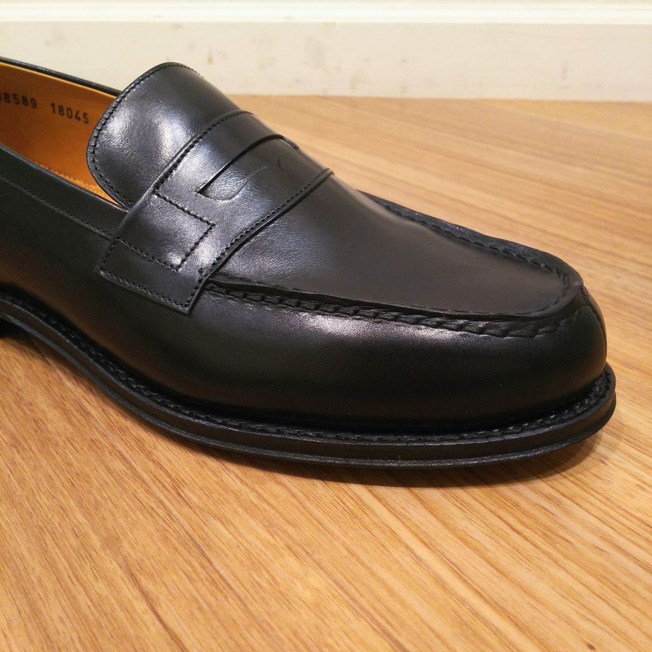 立体的なトゥはモカ縫いの技術が素晴らしく、サドルの形や全体的なバランスも秀逸です。ステッチワークもピッチが細かく技術力の高さを感じられます。