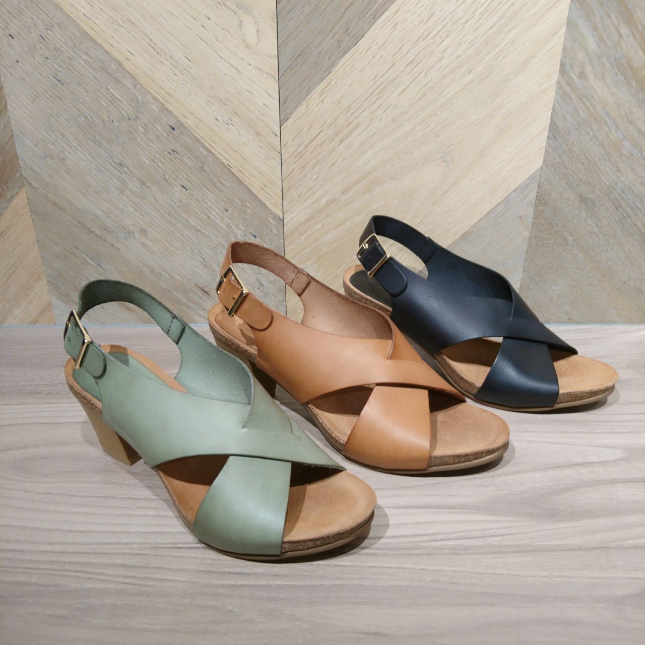 しっかり高さのあるヒールと、つま先のクロス部分がお足を綺麗に見せてくれます!